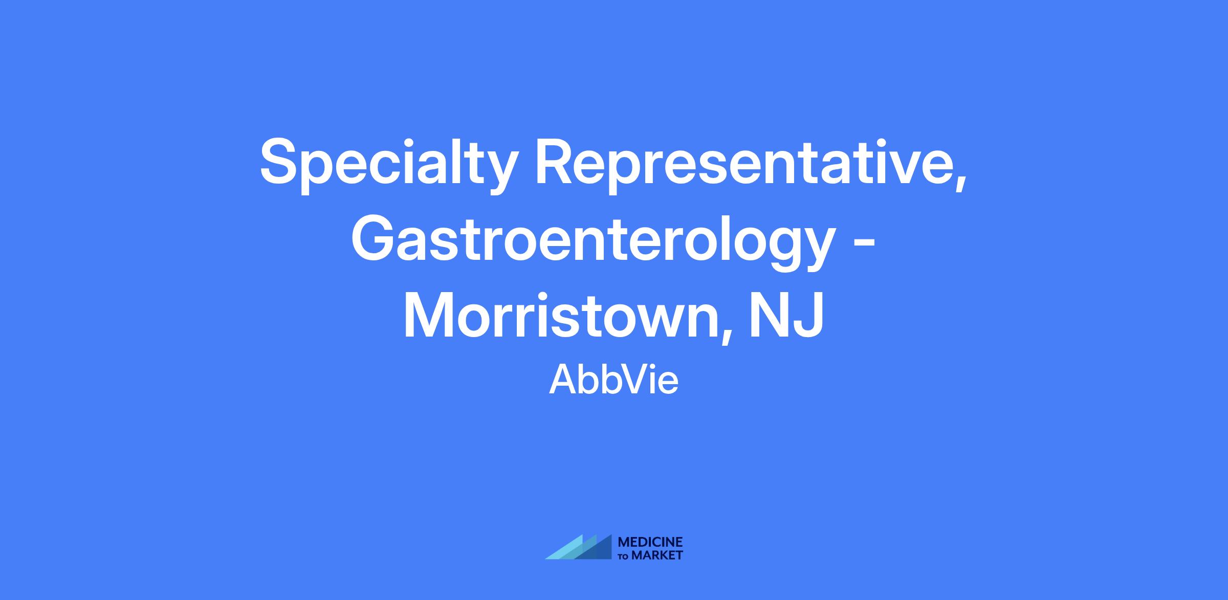 Specialty Representative, Gastroenterology - Morristown, NJ. Field-based role covering Morristown, Princeton, and surrounding areas. Execute brand strategy and tactics in the field to maximize short and long-term sales performance, focusing on patient-centered outcomes and compliance with all laws and AbbVie policies.