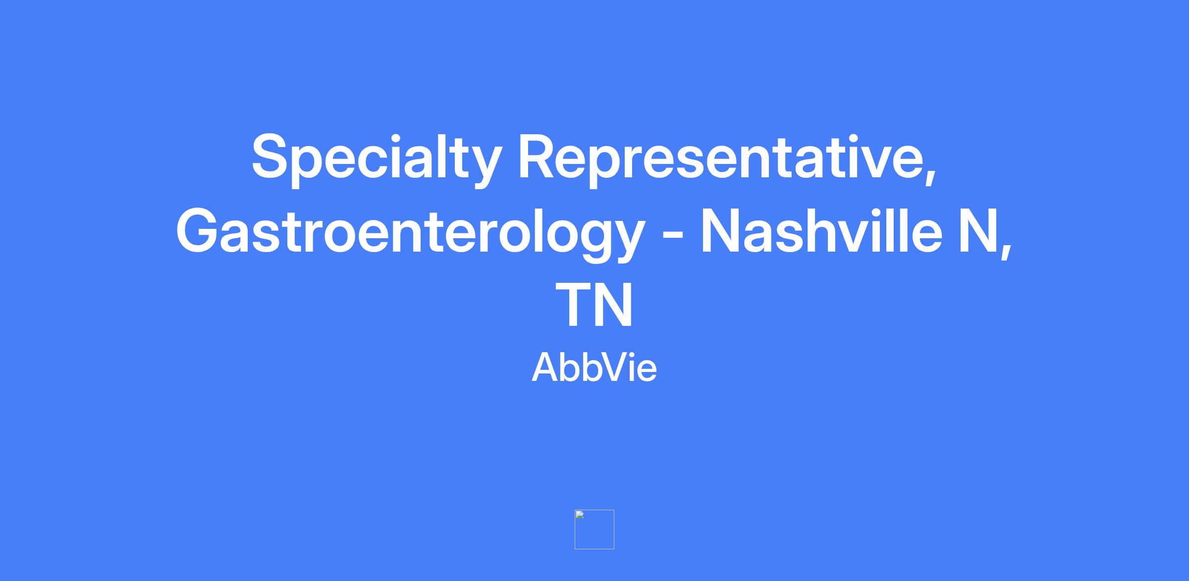 Specialty Representative, Gastroenterology - Nashville N, TN. Execute brand strategy and tactics in field, drive sales performance, effectively manage assigned territory and targeted accounts, build strong customer relationships and customer needs solving capability to maximize short and long term sales performance while placing the patient at the center and operating within AbbVie’s code of conduct and all applicable laws and regulations.