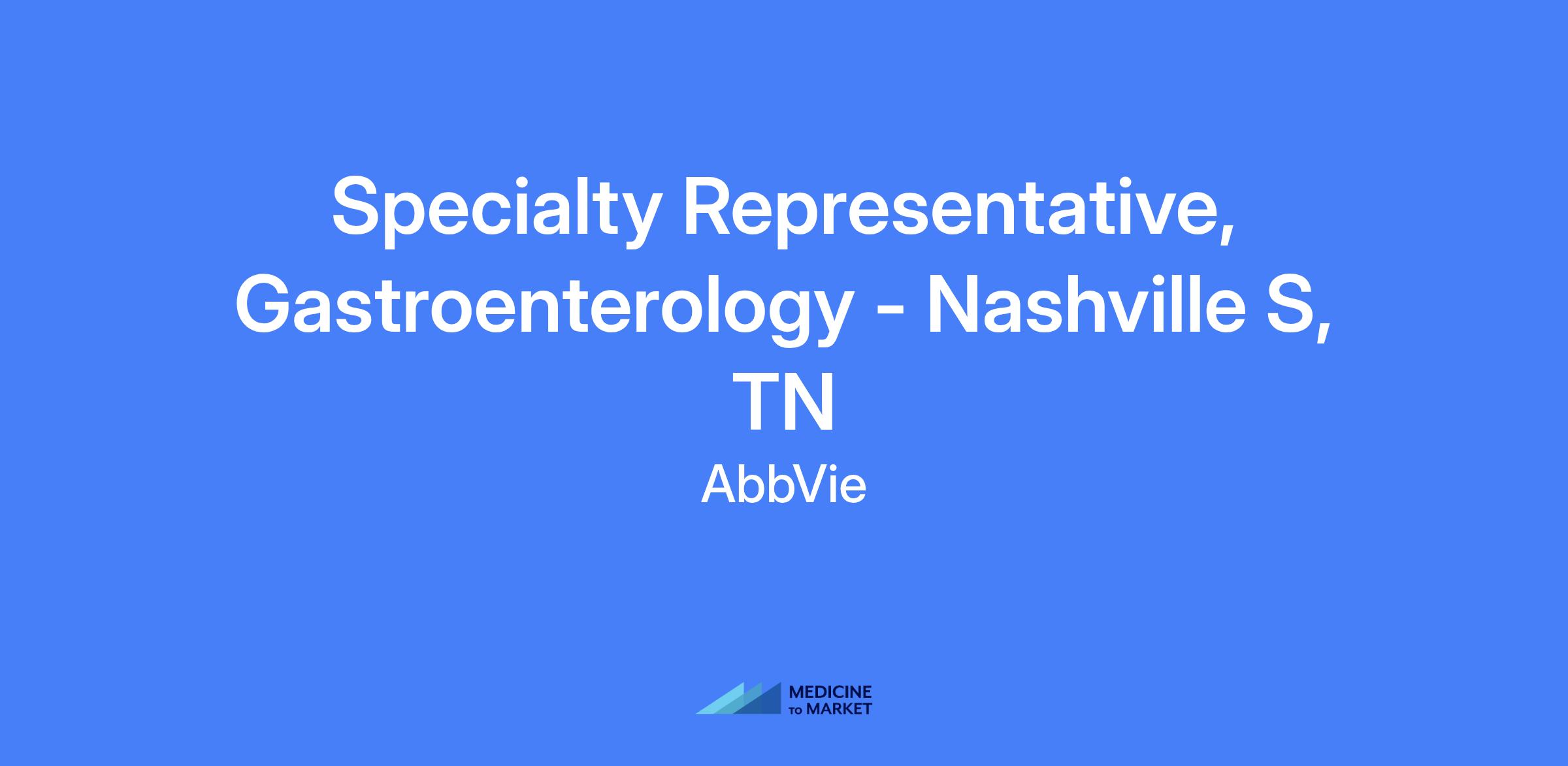 Specialty Representative, Gastroenterology - Nashville S, TN. Execute brand strategy and tactics in field, manage assigned territory and targeted accounts, build strong customer relationships, and solve customer needs to maximize short and long term sales performance with patient-centered focus and in compliance with all laws and AbbVie policies.