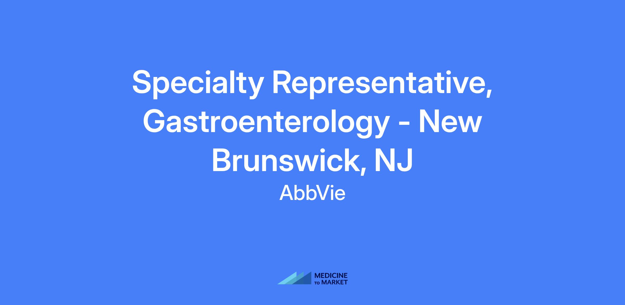Specialty Representative, Gastroenterology - New Brunswick, NJ. Field-based role covering New Brunswick and the northern Jersey shore. Role involves executing brand strategy and tactics in the field, managing territory and targeted accounts, building strong customer relationships, and solving customer needs to maximize short and long-term sales while complying with all laws and AbbVie policies.