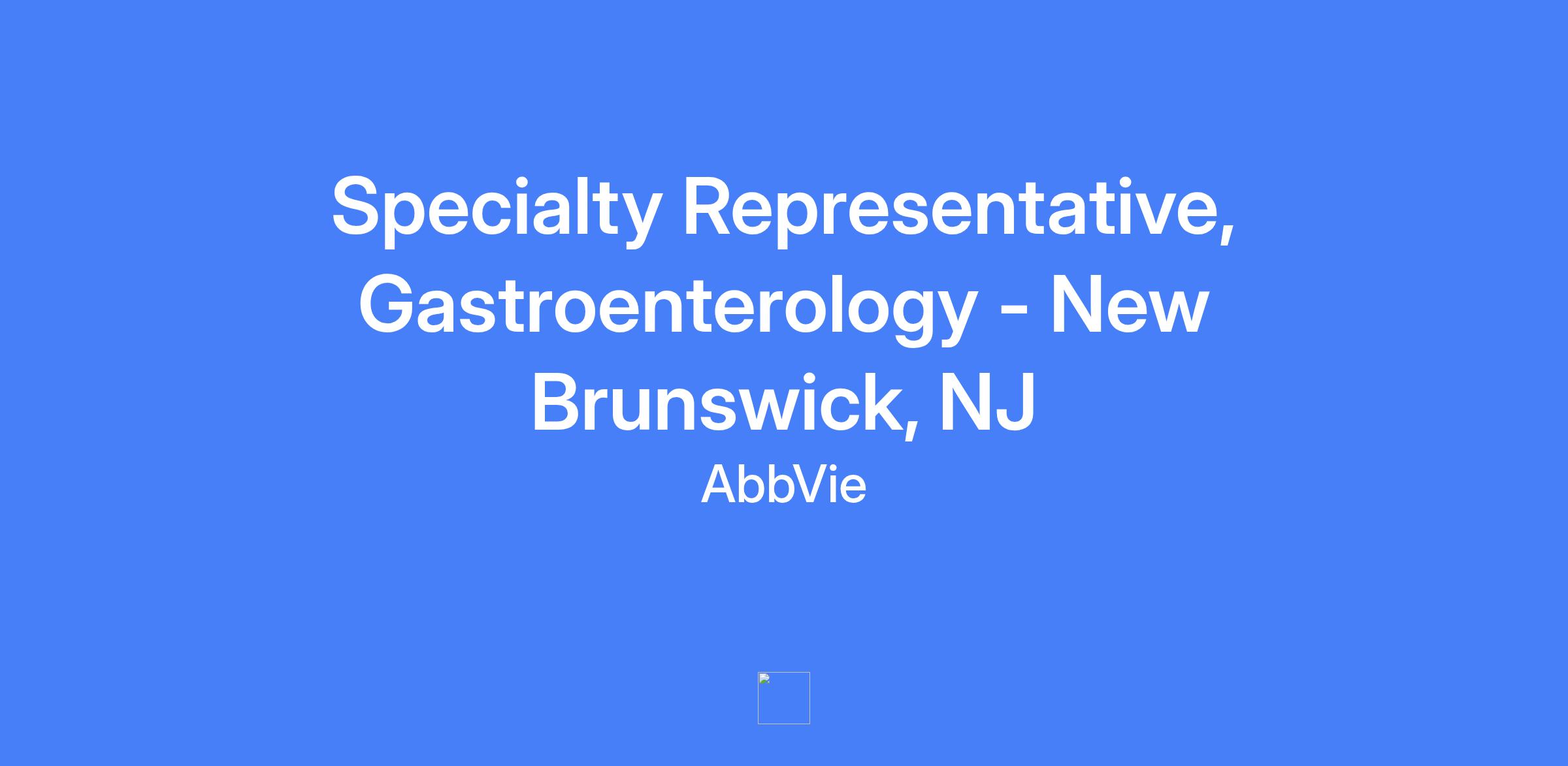Specialty Representative, Gastroenterology - New Brunswick, NJ. Field-based role covering New Brunswick and the northern Jersey shore. Role involves executing brand strategy and tactics in the field, managing territory and targeted accounts, building strong customer relationships, and solving customer needs to maximize short and long-term sales while complying with all laws and AbbVie policies.