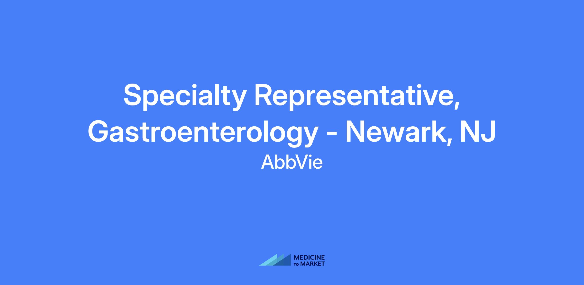 Specialty Representative, Gastroenterology - Newark, NJ. Field-based role covering Newark, Bergen County, and surrounding areas. Talent will be hired at a level commensurate with experience.