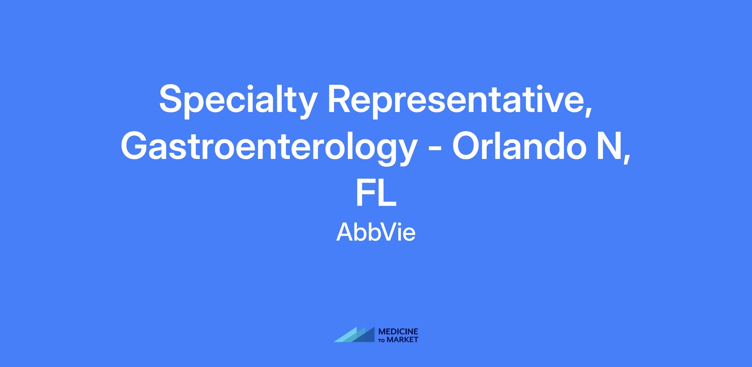 Specialty Representative, Gastroenterology - Orlando N, FL. Field-based role serving the Orlando area; geography includes Orlando, Winter Springs, Sanford, Daytona Beach, Palm Coast, Lakeside. Talent will be hired at a level commensurate with experience.