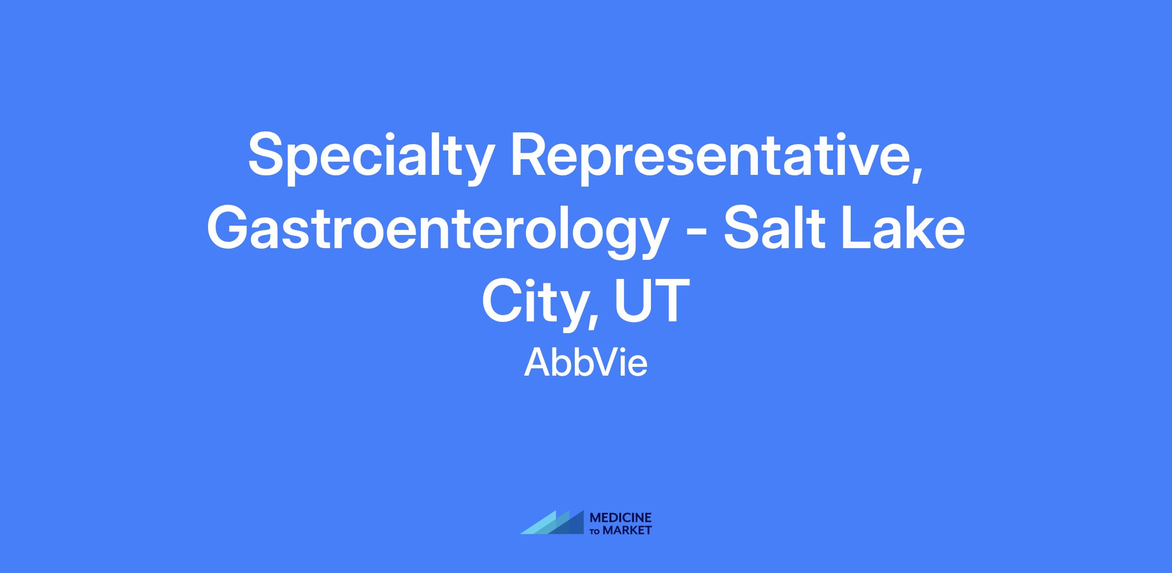 Specialty Representative, Gastroenterology - Salt Lake City, UT. Field-based role covering Utah, Boise ID, Southeast Idaho, and surrounding areas. Responsible for executing brand strategy and tactics in the field, driving sales performance, managing territory and accounts, and solving customer needs with the patient at the center while adhering to all laws and AbbVie policies.