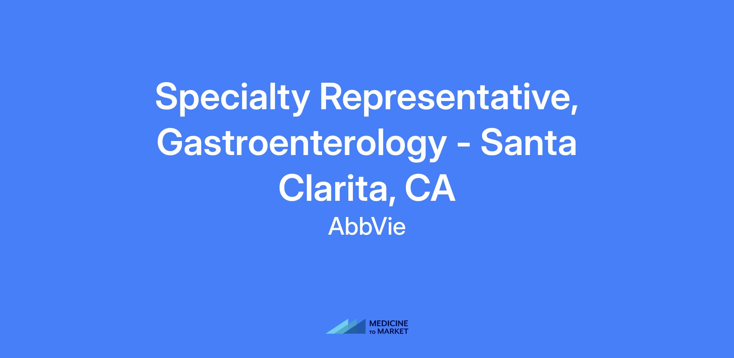 Specialty Representative, Gastroenterology - Santa Clarita, CA. Field-based role covering Santa Clarita and surrounding areas; responsible for executing brand strategy and tactics, managing territory and targeted accounts, building strong customer relationships, and solving customer needs to maximize sales performance while adhering to all laws and AbbVie policies.