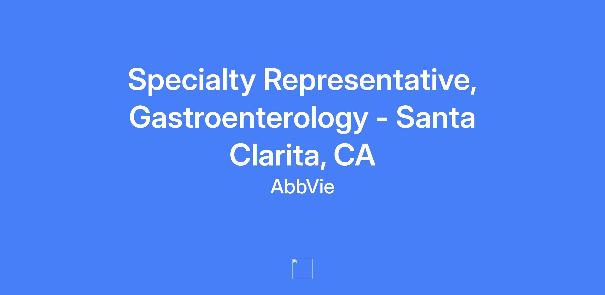 Specialty Representative, Gastroenterology - Santa Clarita, CA. Field-based role covering Santa Clarita and surrounding areas; responsible for executing brand strategy and tactics, managing territory and targeted accounts, building strong customer relationships, and solving customer needs to maximize sales performance while adhering to all laws and AbbVie policies.