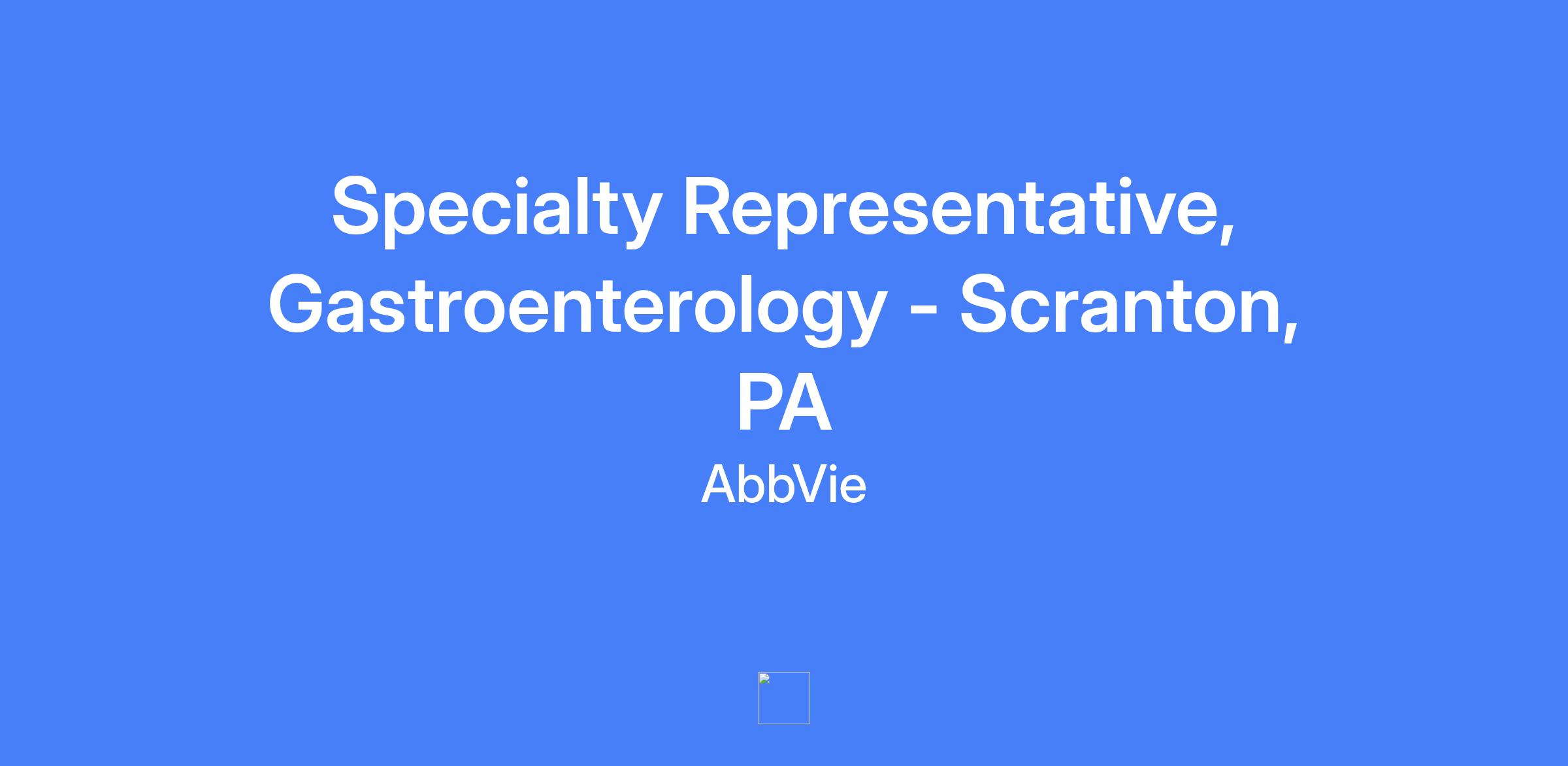 Specialty Representative, Gastroenterology in Scranton, PA. Execute brand strategy and tactics in the field, manage the assigned territory and targeted accounts, build strong customer relationships, and solve customer needs to maximize short and long-term sales performance while operating within AbbVie’s code of conduct and applicable laws and regulations.