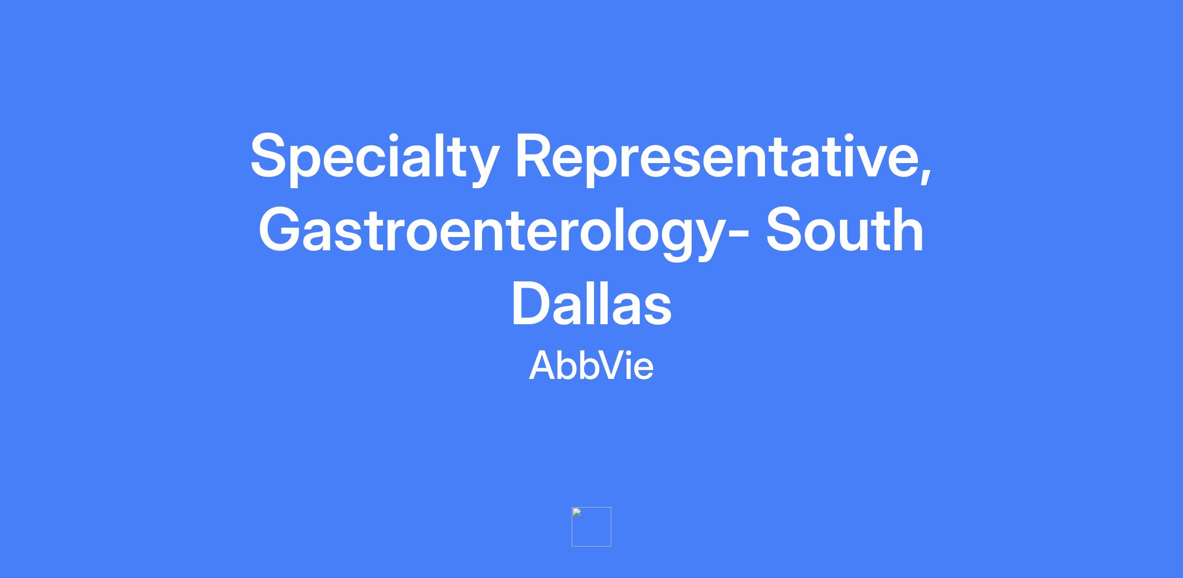 Specialty Representative, Gastroenterology- South Dallas. Field-based role serving Irving, Dallas, Rowlett, Arlington, Waxahachie, Bedford, and surrounding areas. Role focuses on executing brand strategy, driving field sales performance, managing territory and accounts, and placing the patient at the center of efforts within AbbVie’s code of conduct and applicable laws.