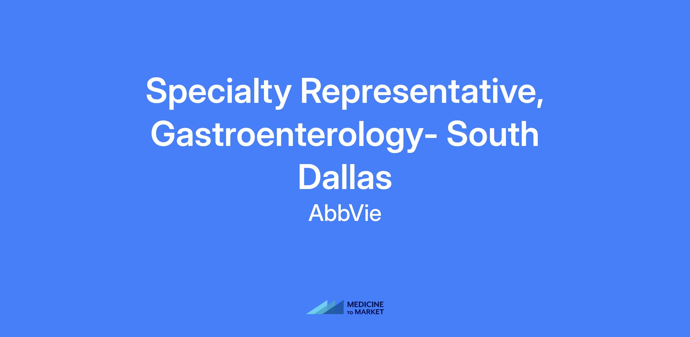 Specialty Representative, Gastroenterology- South Dallas. Field-based role serving Irving, Dallas, Rowlett, Arlington, Waxahachie, Bedford, and surrounding areas. Role focuses on executing brand strategy, driving field sales performance, managing territory and accounts, and placing the patient at the center of efforts within AbbVie’s code of conduct and applicable laws.