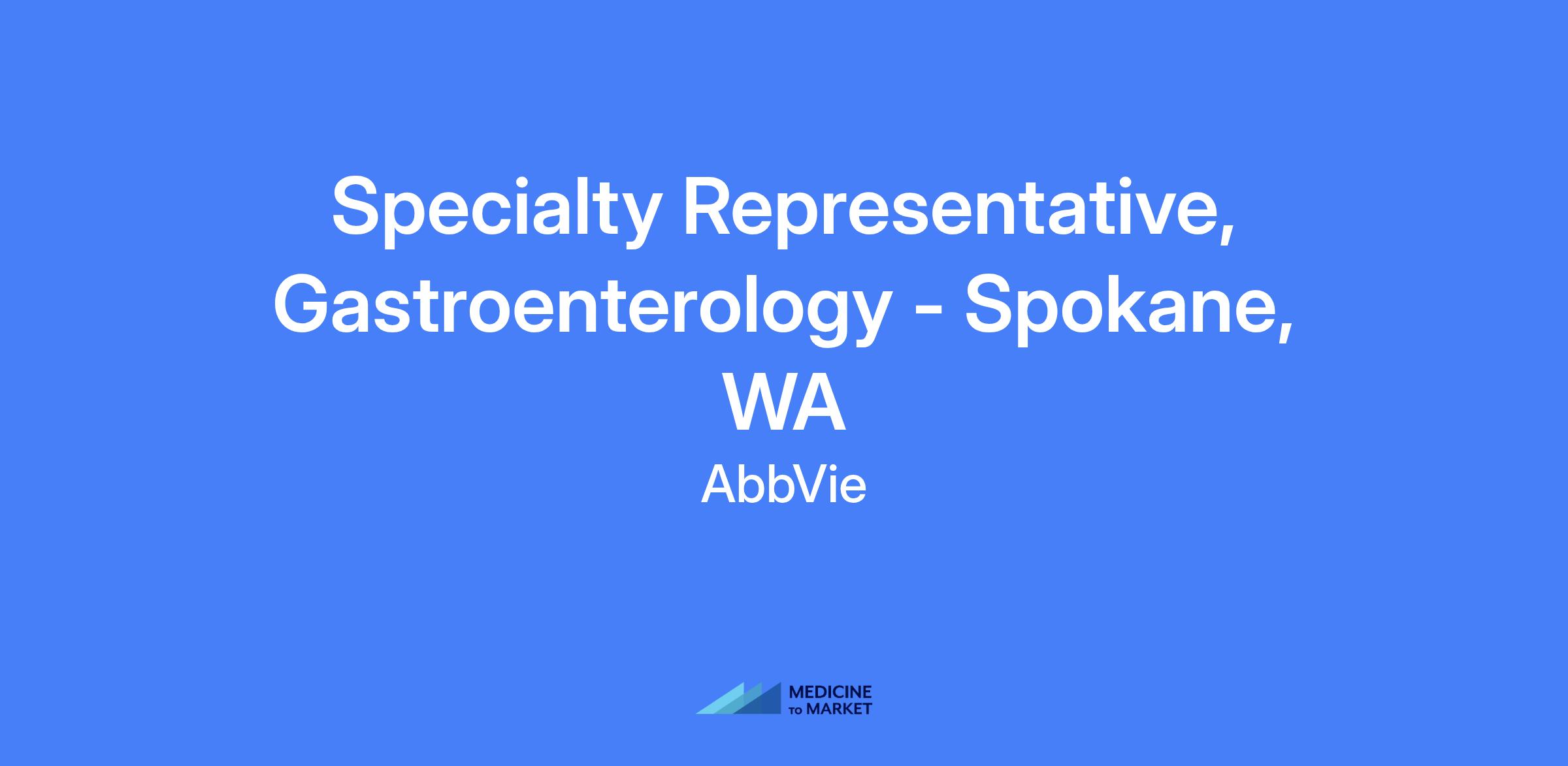 Specialty Representative, Gastroenterology - Spokane, WA. Field-based role covering Spokane, surrounding areas, northern Idaho, and all of Montana. Responsible for executing brand strategy and tactics in the field, managing the assigned territory and targeted accounts, and building strong customer relationships to maximize short and long-term sales performance while placing the patient at the center of efforts.