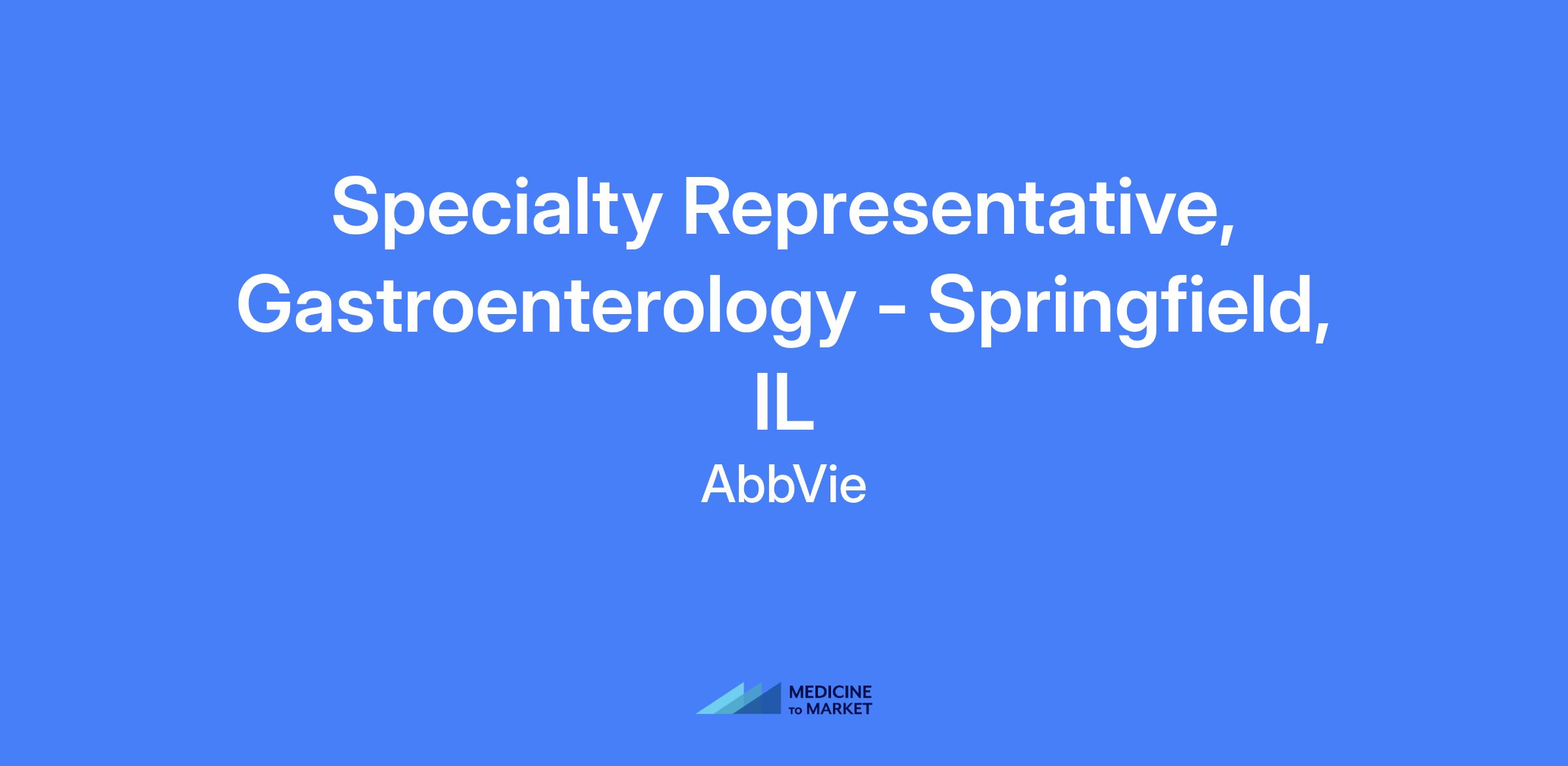 Specialty Representative, Gastroenterology - Springfield, IL. This field-based role covers Springfield and surrounding areas, with employment at a level commensurate with experience. The position focuses on executing brand strategy and tactics in the field, managing the assigned territory and targeted accounts, building strong customer relationships, and placing the patient at the center of AbbVie’s efforts while complying with all laws and regulations.