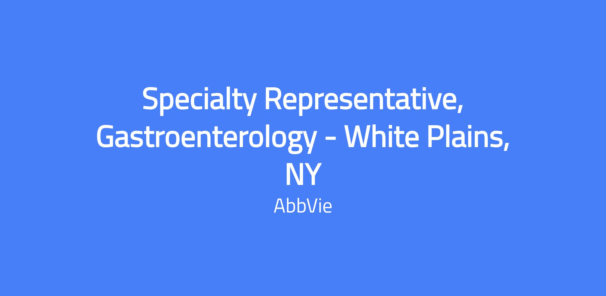 Field-based Specialty Representative for Gastroenterology in White Plains, NY. Execute brand strategy and tactics in the field, manage the assigned territory and targeted accounts, and build strong customer relationships to maximize short- and long-term sales performance with the patient at the center of AbbVie’s efforts. Operate within AbbVie’s code of conduct, policies and all applicable laws and regulations. Travel within a reasonable distance from the primary city is expected.