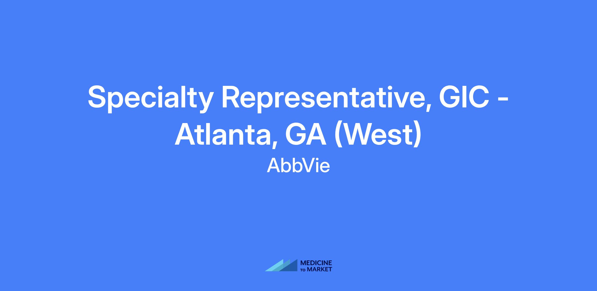 Specialty Representative, GIC - Atlanta, GA (West). Execute brand strategy and tactics in field, sales performance, effectively manage assigned territory and targeted accounts, build strong customer relationships and customer needs solving capability to maximize short and long term sales performance placing the patient into the center of any efforts and operating within AbbVie’s business code of conduct, policies and all applicable laws and regulations.