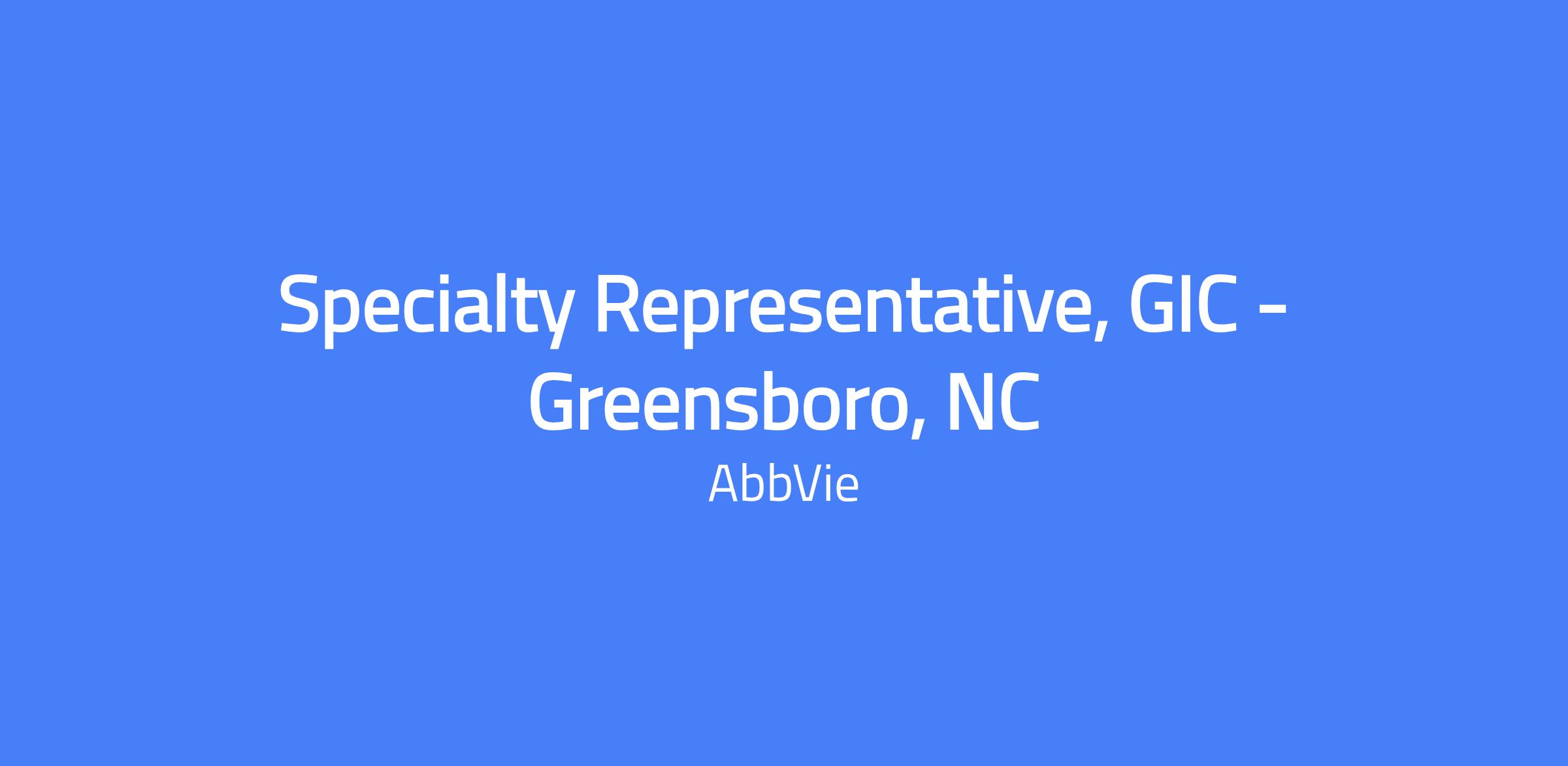 The Specialty Representative, GIC in Greensboro, NC is a field-based sales role responsible for delivering sales performance and achieving brand objectives. The role requires building trusted customer relationships, executing call plans, and differentiating AbbVie’s value proposition with health providers while ensuring compliance with HCIR credentialing requirements.