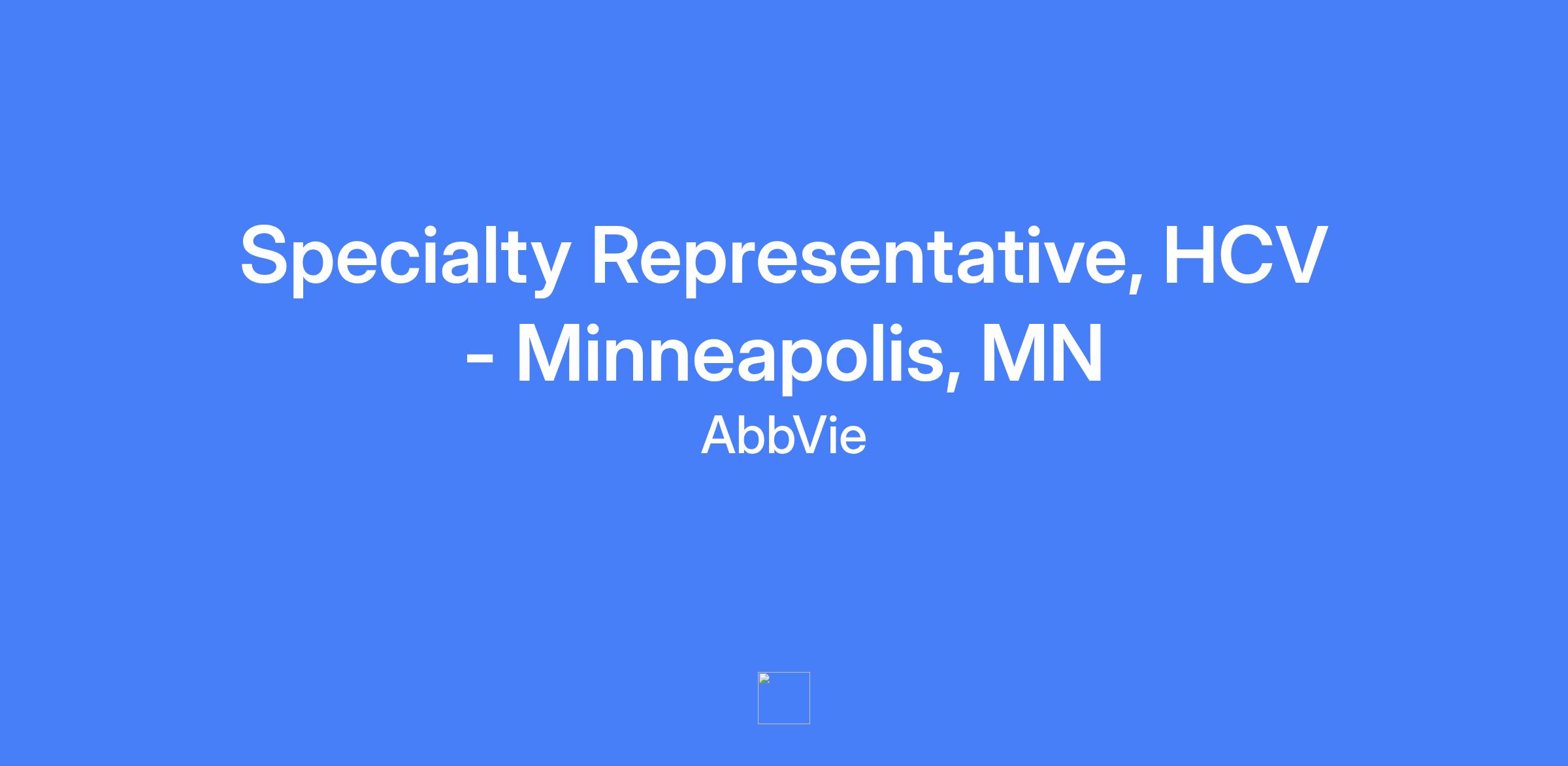 Specialty Representative, HCV - Minneapolis, MN. Execute brand strategy and tactics in field, drive sales performance, effectively manage assigned territory and targeted accounts, and build strong customer relationships to maximize short and long term sales performance with patient-centered focus.