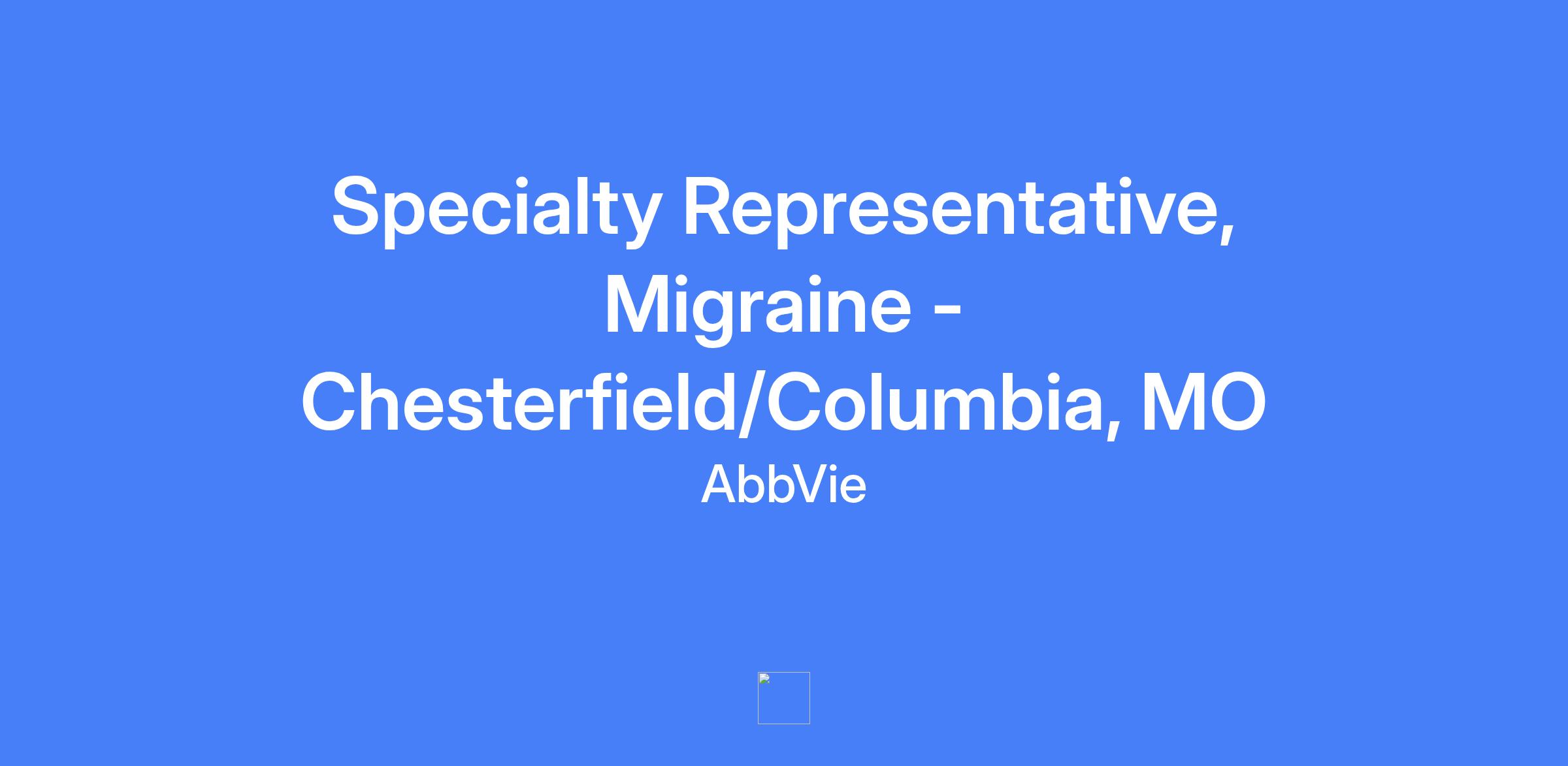 Specialty Representative, Migraine - Chesterfield/Columbia, MO. Field-based role focused on executing brand strategy and tactics to drive sales performance, manage territory and accounts, and build strong customer relationships with patient-centric focus. Role requires working within AbbVie’s code of conduct and applicable laws.