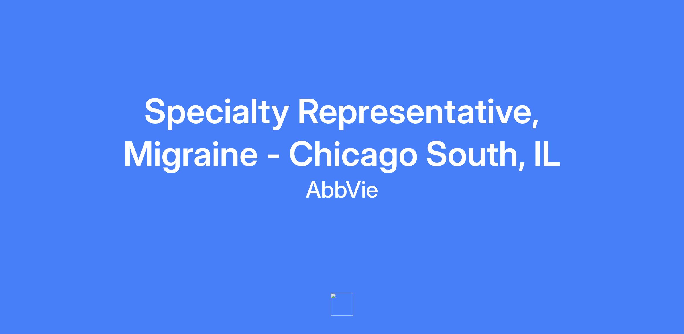 Specialty Representative, Migraine - Chicago South, IL. Field-based role; candidate should live within a reasonable distance from the primary city. Talent will be hired at a level commensurate with experience.