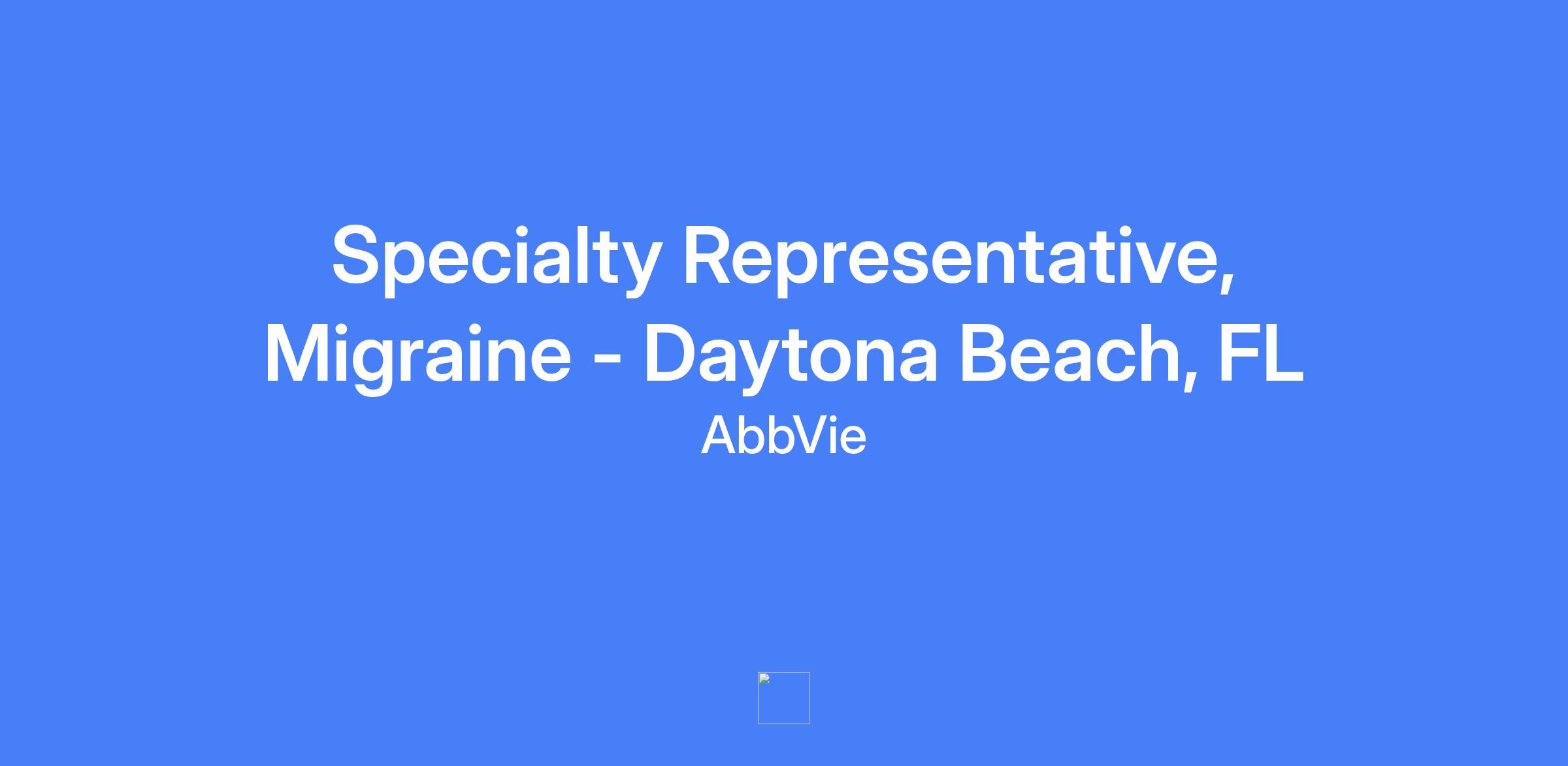 Specialty Representative, Migraine - Daytona Beach, FL. Field-based role; candidates should live within a reasonable distance from the primary city. Level hired will be commensurate with experience.