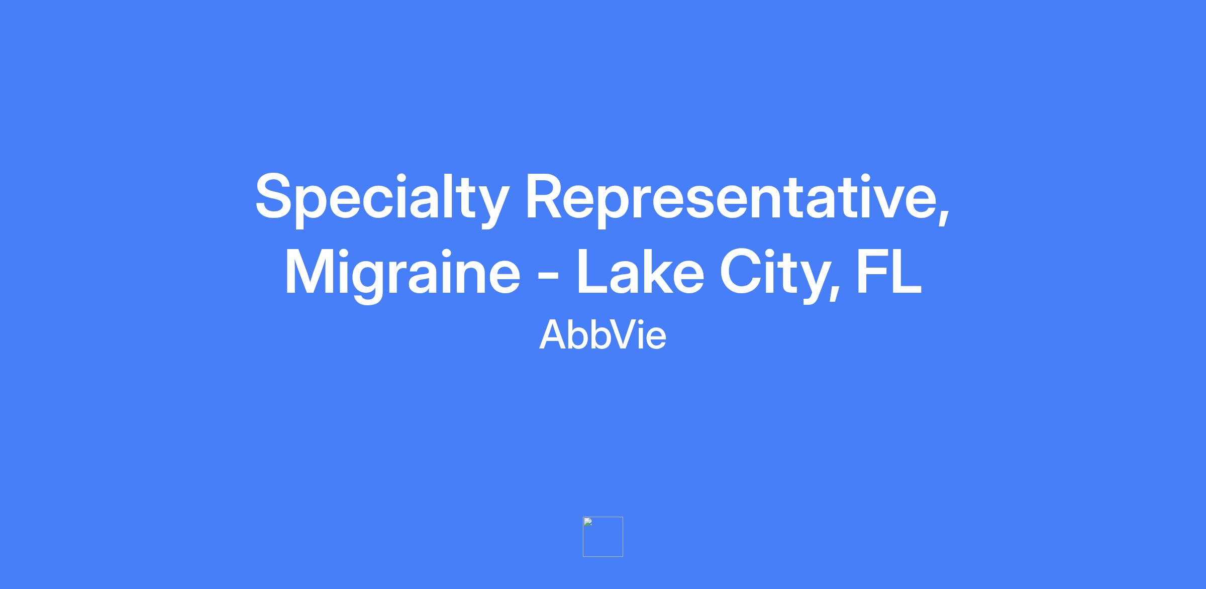 Specialty Representative, Migraine - Lake City, FL. Field-based role within a territory, focusing on executing brand strategy and tactics to maximize short and long-term sales performance while placing the patient at the center of efforts. Hires at a level commensurate with experience.