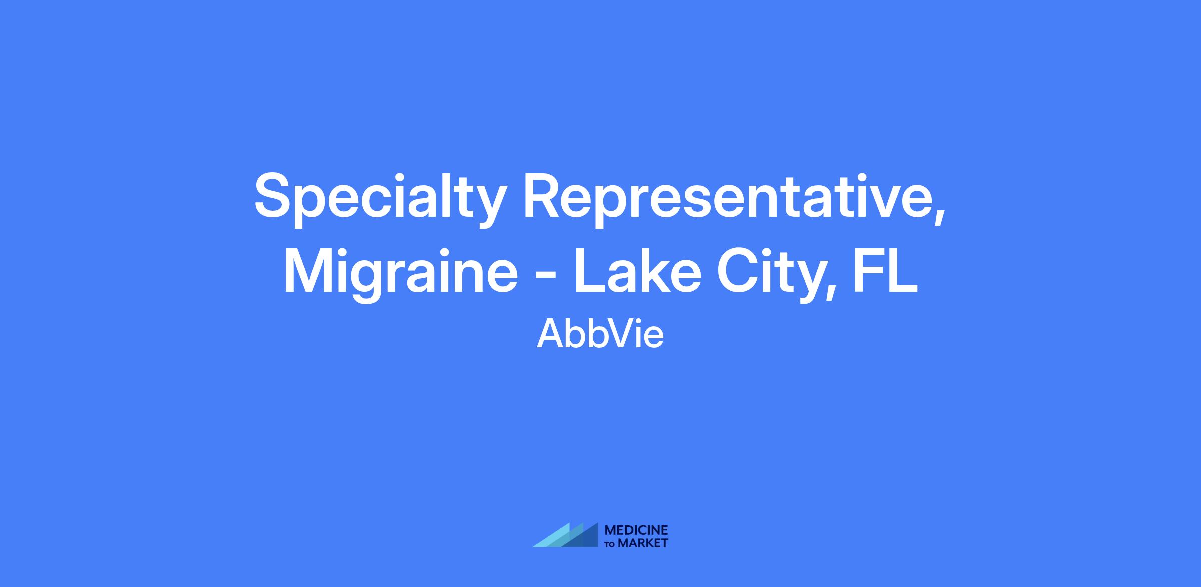 Specialty Representative, Migraine - Lake City, FL. Field-based role within a territory, focusing on executing brand strategy and tactics to maximize short and long-term sales performance while placing the patient at the center of efforts. Hires at a level commensurate with experience.