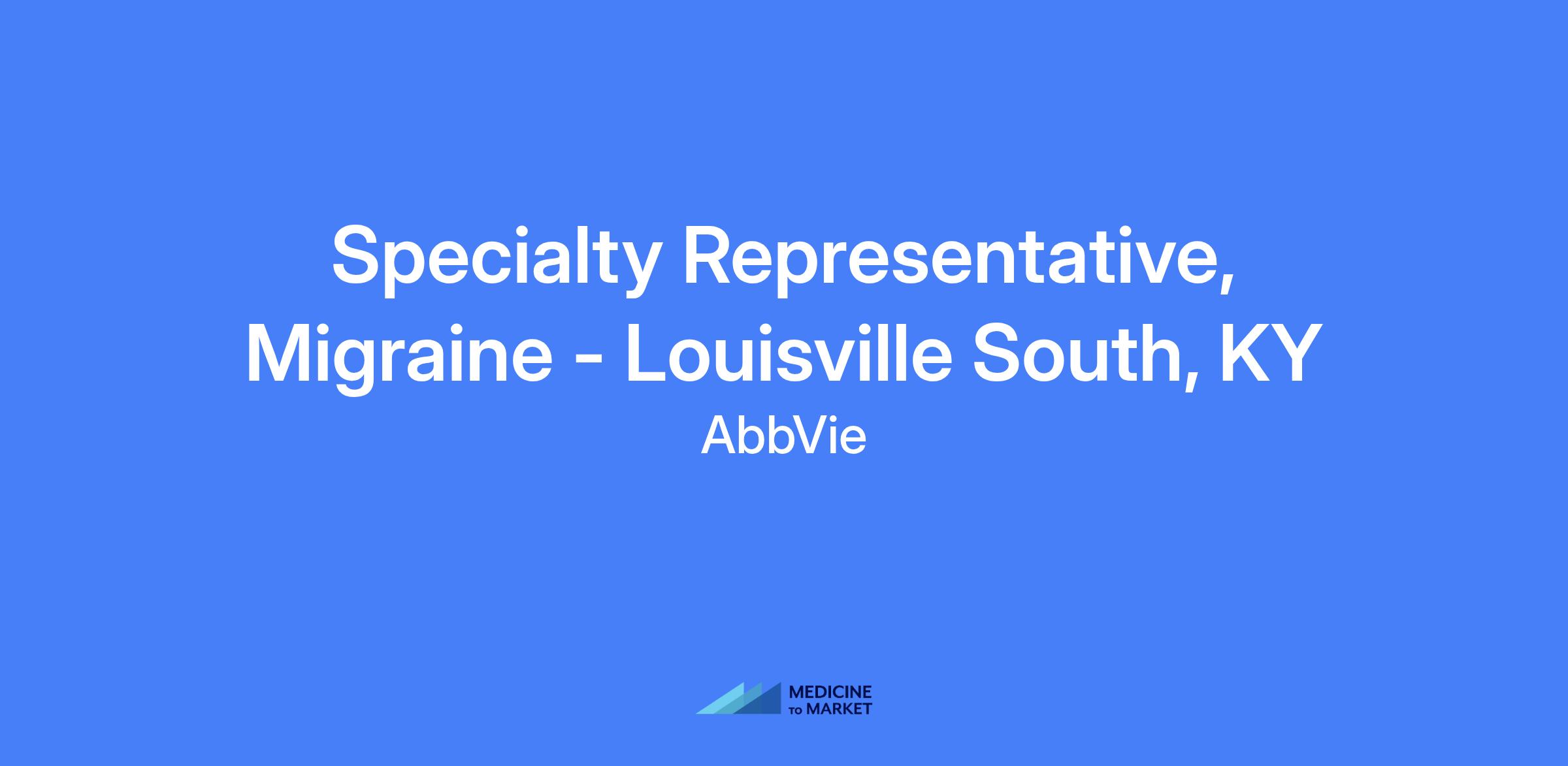 Specialty Representative, Migraine - Louisville South, KY. This field-based role requires residence within a reasonable distance from the primary city and will be hired at a level commensurate with experience. The role involves executing brand strategy and tactics in the field, managing the assigned territory and targeted accounts, building strong customer relationships, and solving customer needs to maximize short and long-term sales performance with patient-centric focus.