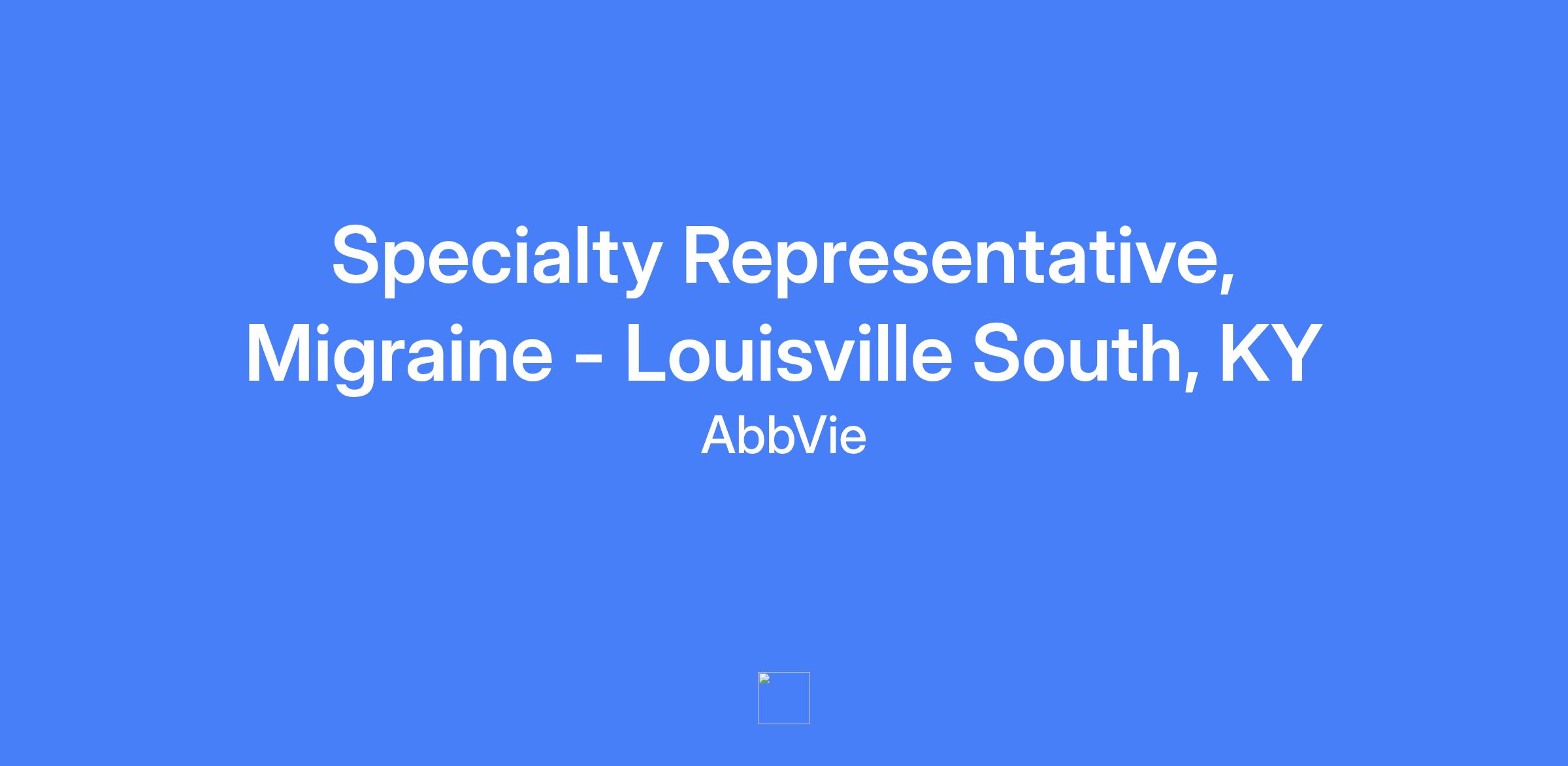 Specialty Representative, Migraine - Louisville South, KY. This field-based role requires residence within a reasonable distance from the primary city and will be hired at a level commensurate with experience. The role involves executing brand strategy and tactics in the field, managing the assigned territory and targeted accounts, building strong customer relationships, and solving customer needs to maximize short and long-term sales performance with patient-centric focus.