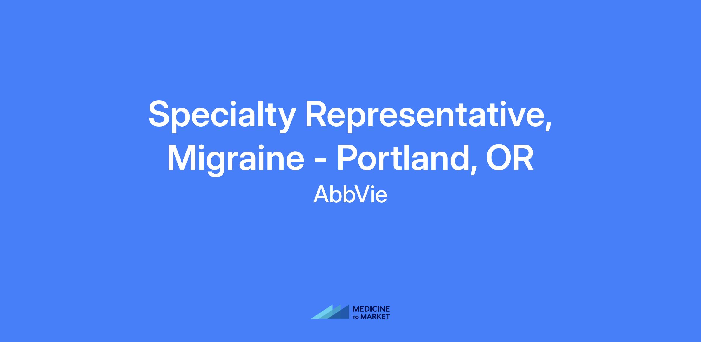 Specialty Representative, Migraine - Portland, OR. Field-based role focused on executing brand strategy and driving sales performance within a defined territory, placing the patient at the center of efforts and operating within company policies and applicable laws.