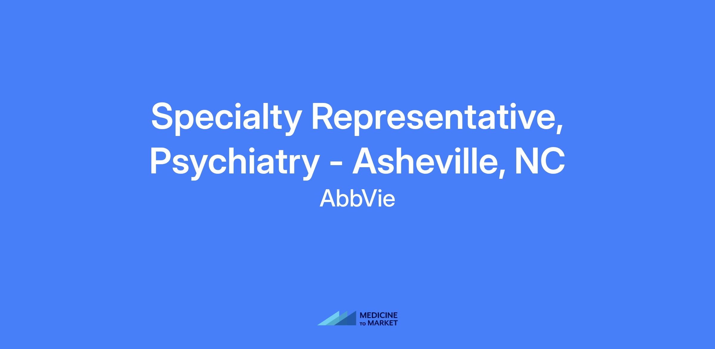 Specialty Representative, Psychiatry - Asheville, NC. Field-based role serving within a defined territory, focused on executing brand strategy and tactics, achieving sales performance, and building strong customer relationships to maximize short and long-term sales while placing the patient at the center of efforts.