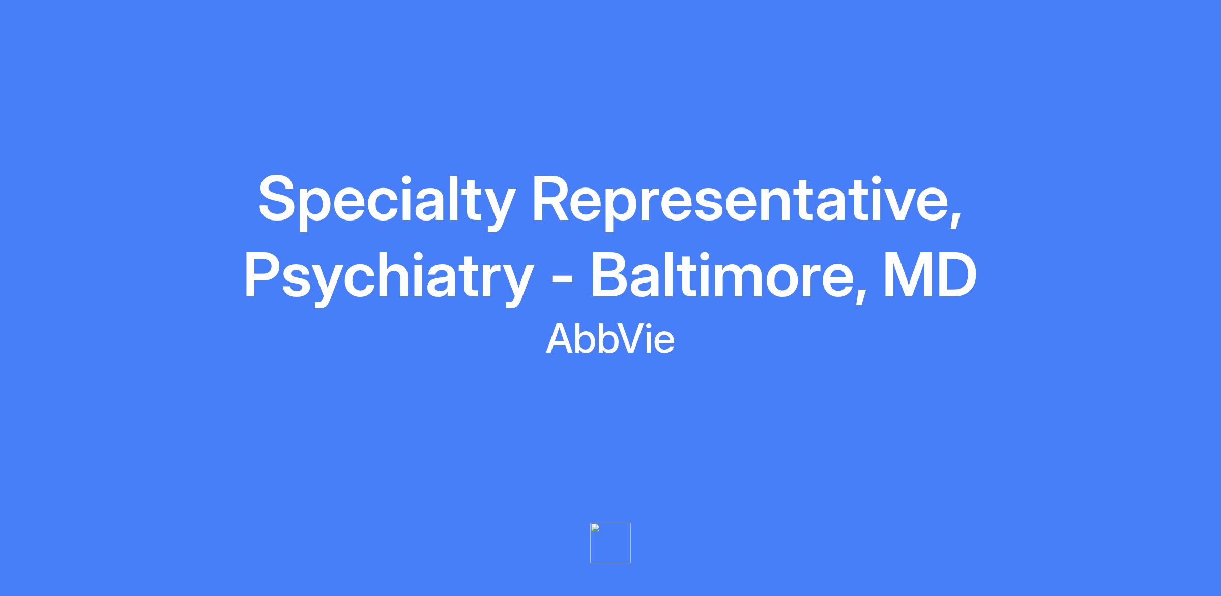 Specialty Representative, Psychiatry - Baltimore, MD. Field-based role responsible for executing brand strategy and tactics in the assigned territory, managing accounts, building customer relationships, and solving customer needs to maximize short and long-term sales performance with patient-centered focus.