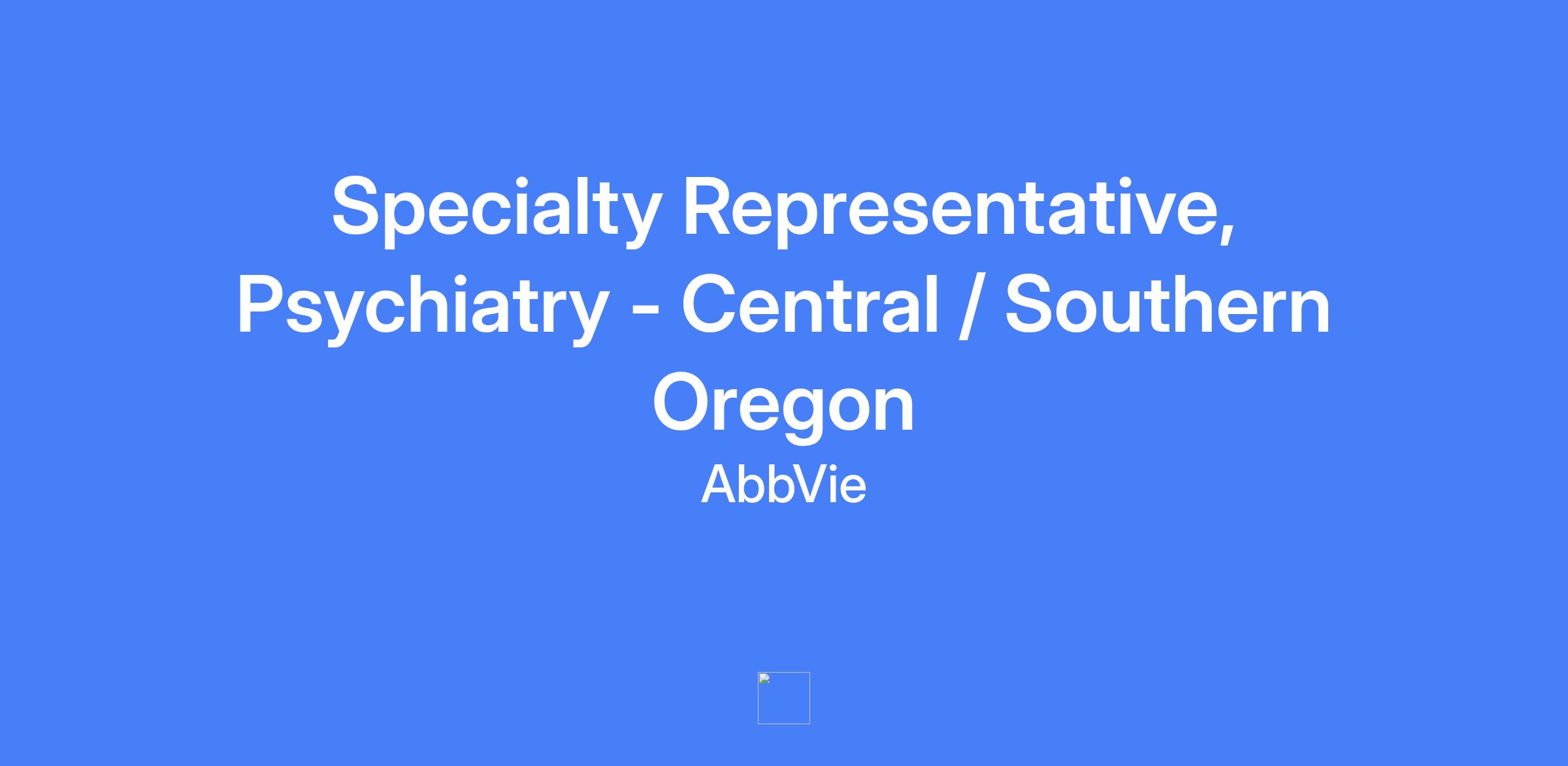Specialty Representative, Psychiatry - Central / Southern Oregon. Field-based role; candidates should live within a reasonable distance from the primary city. Talent will be hired at a level commensurate with experience.