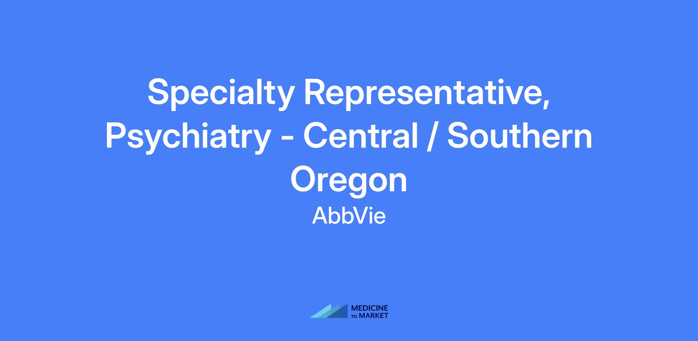 Specialty Representative, Psychiatry - Central / Southern Oregon. Field-based role; candidates should live within a reasonable distance from the primary city. Talent will be hired at a level commensurate with experience.
