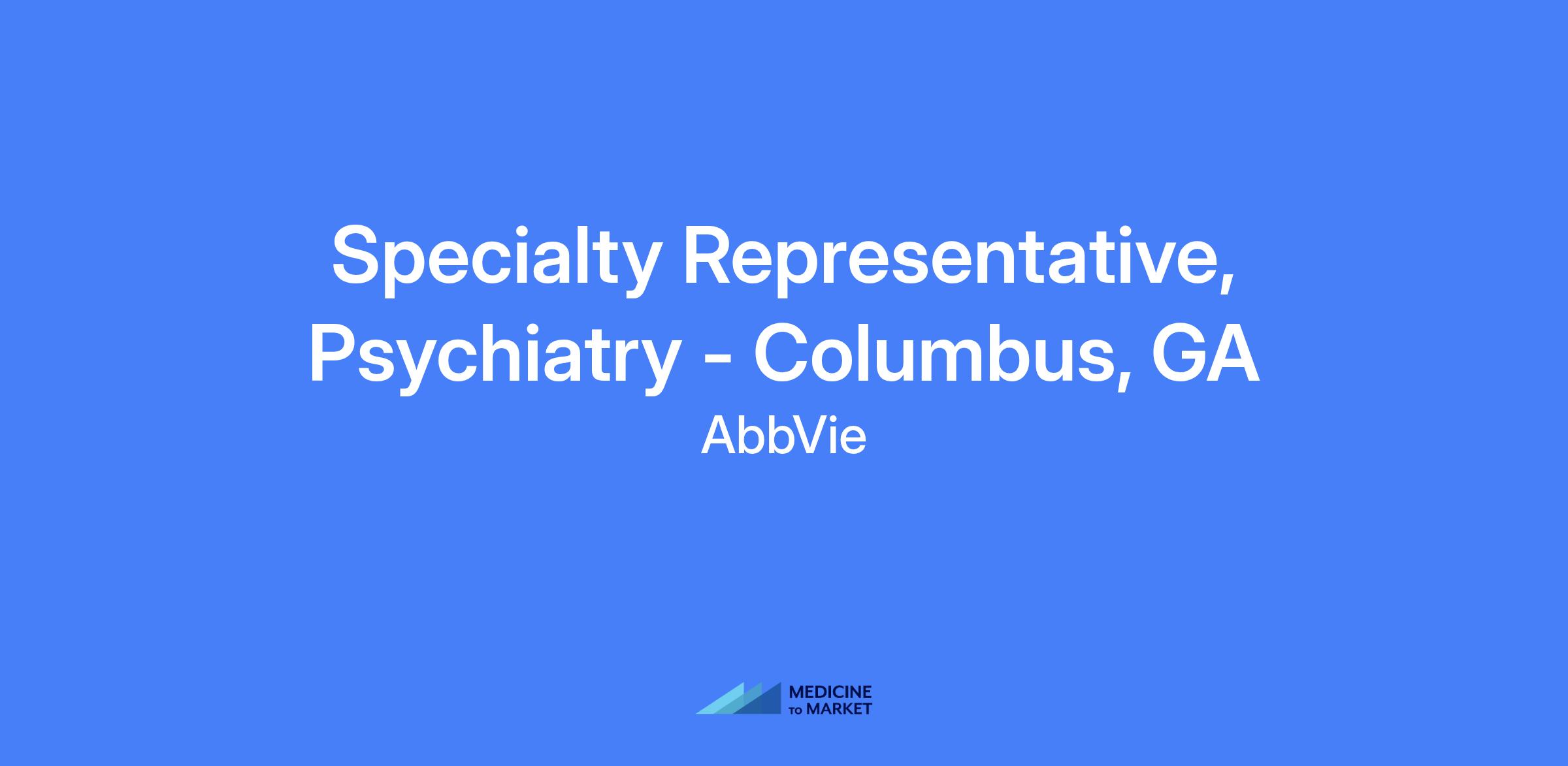 Specialty Representative, Psychiatry - Columbus, GA. Field-based role; candidates should live within a reasonable distance from the primary city. Talent will be hired at a level commensurate with experience.