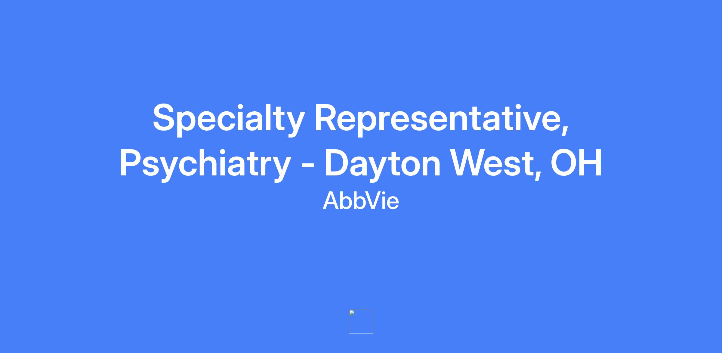 Specialty Representative, Psychiatry - Dayton West, OH. Field-based role; candidates should live within a reasonable distance from the primary city. Talent will be hired at a level commensurate with experience.