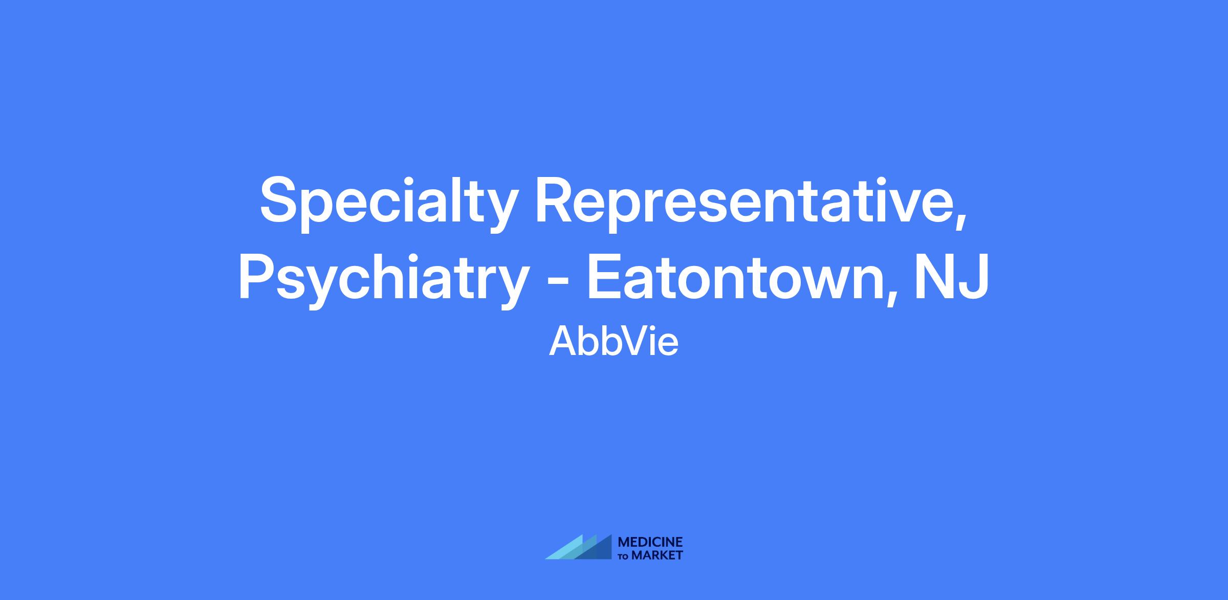 Specialty Representative, Psychiatry - Eatontown, NJ. Field-based role; responsible for executing brand strategy and achieving sales performance within the assigned territory, placing the patient at the center of efforts and operating within all laws and AbbVie policies. Role requires building strong customer relationships and solving customer needs to maximize short and long-term sales performance.