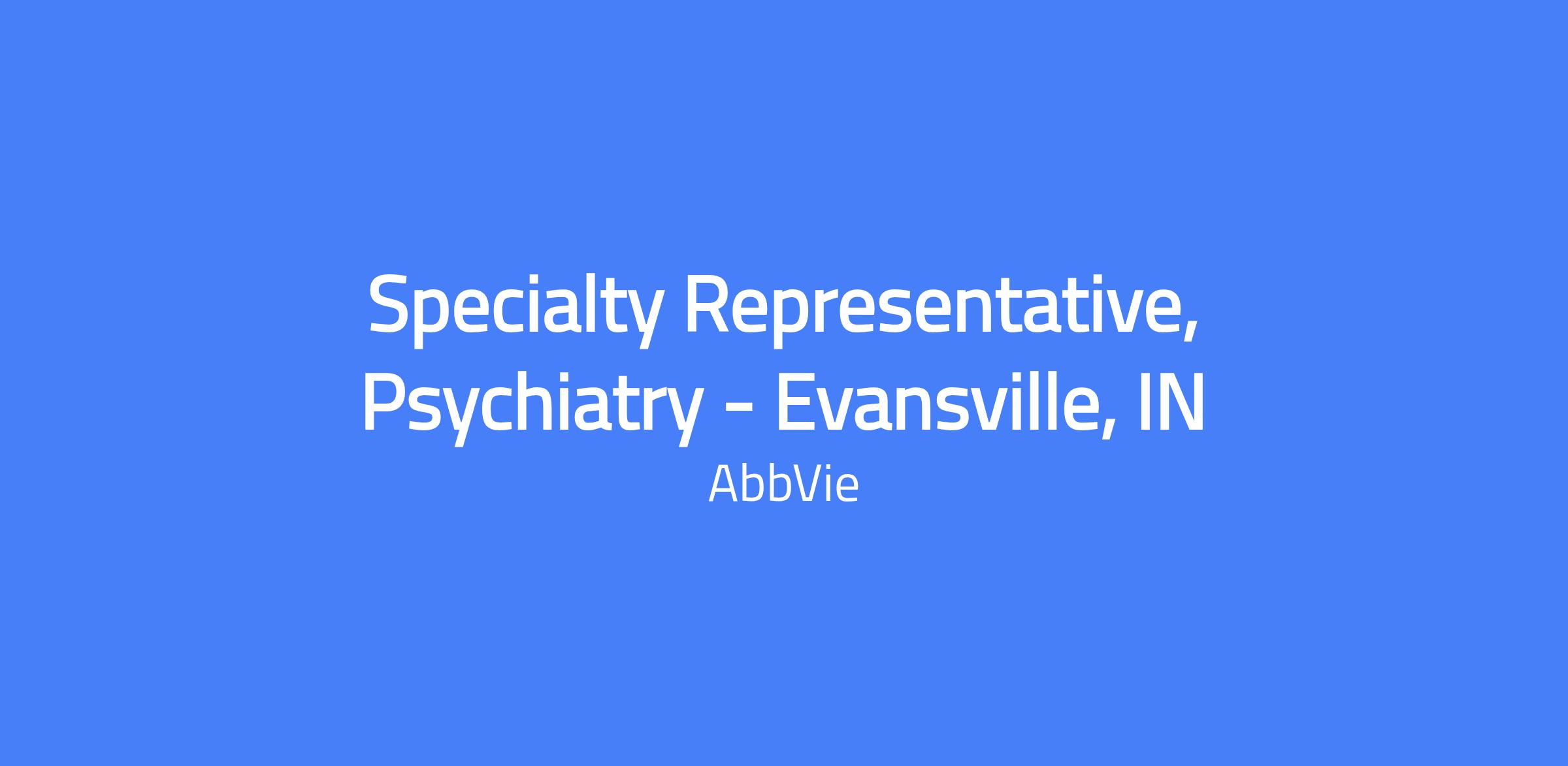 Field-based specialty sales role focused on psychiatry, responsible for executing brand strategy and achieving sales targets within the Evansville, IN territory. Builds strong customer relationships, solves customer needs, and places the patient at the center of AbbVie's efforts while operating in compliance with AbbVie policies and applicable laws.