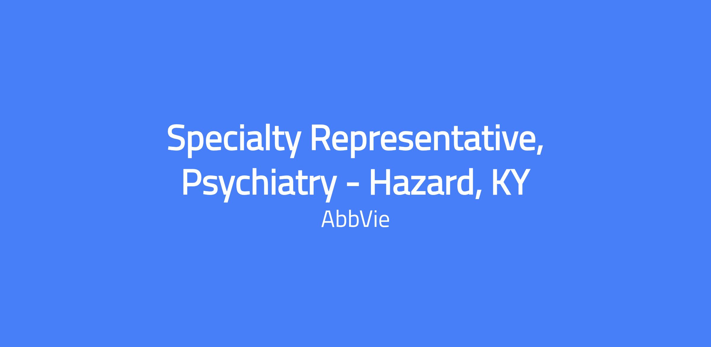 Field-based Specialty Representative, Psychiatry in Hazard, KY. Executes brand strategy and tactics in the field, drives sales performance, and manages the assigned territory and targeted accounts. Builds trusted customer relationships and solves customer needs to maximize short- and long-term sales performance, placing the patient at the center and operating within AbbVie’s code of conduct and all applicable laws and regulations.