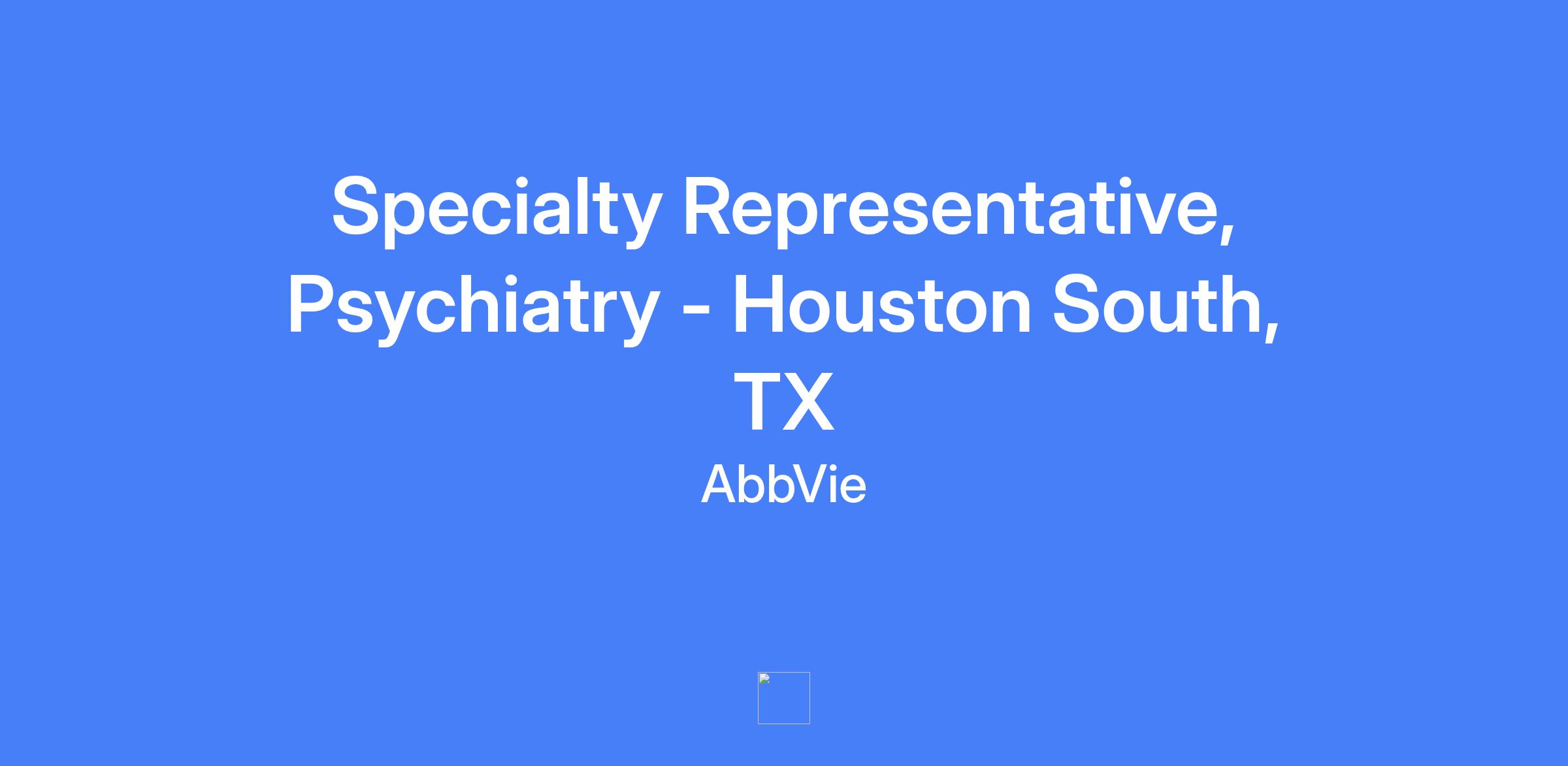 Specialty Representative, Psychiatry for Houston South, TX. This field-based role requires living within a reasonable distance from the primary city and will be hired at a level commensurate with experience. The incumbent is responsible for delivering sales performance, meeting brand KPIs, and building trusted customer relationships with healthcare providers in the assigned territory.