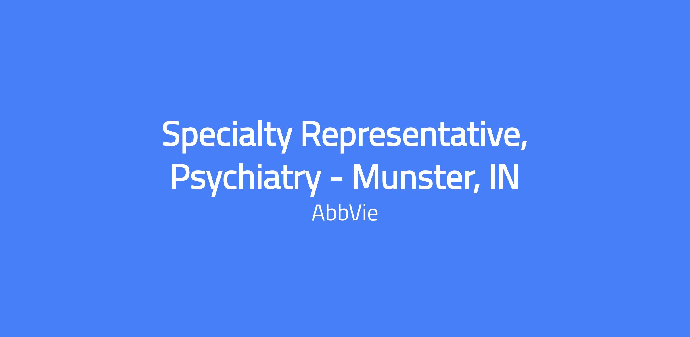 Field-based Specialty Representative in Psychiatry responsible for executing brand strategy and tactics, driving sales performance, and effectively managing the assigned territory and targeted accounts. You will build strong customer relationships and solve customer needs to maximize short- and long-term sales, placing the patient at the center of AbbVie’s efforts and operating within the company code of conduct and all applicable laws and regulations. Candidates should live within a reasonable distance from the primary city.