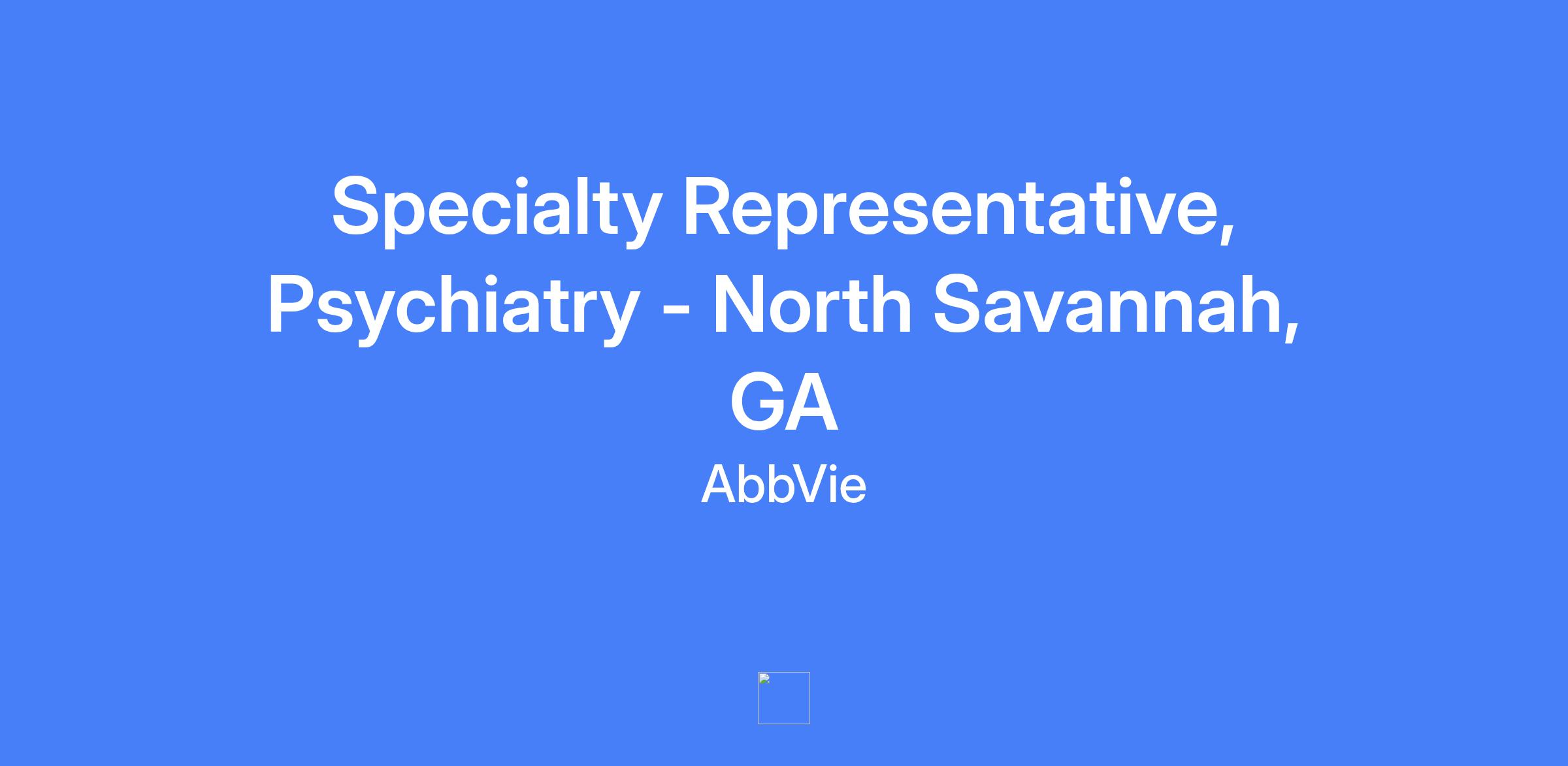 Specialty Representative, Psychiatry - North Savannah, GA. Field-based role focused on executing brand strategy and tactics in the assigned territory to maximize short and long-term sales performance, placing the patient at the center of efforts and operating within AbbVie’s policies and applicable laws.