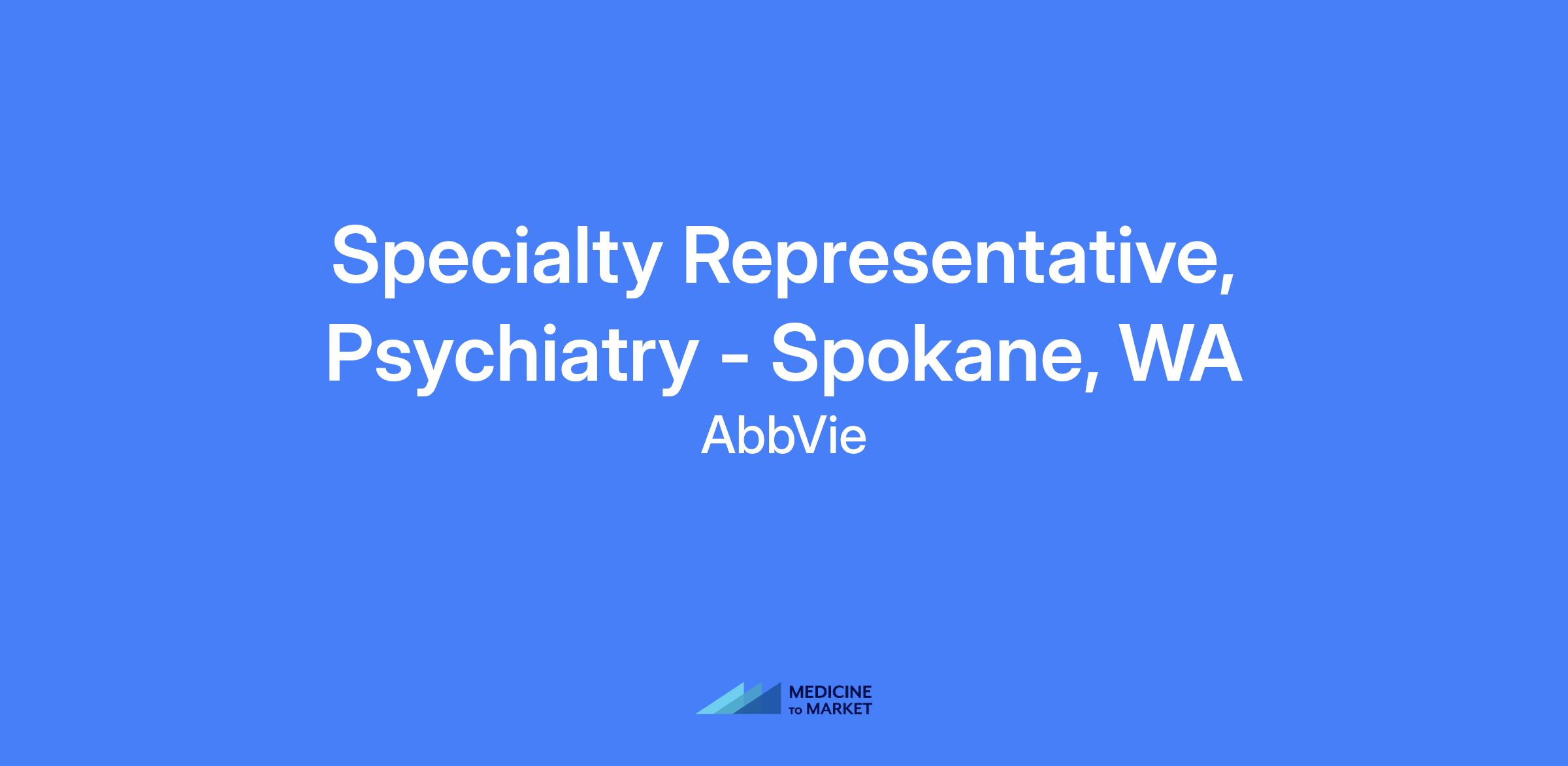 Specialty Representative, Psychiatry - Spokane, WA. Field-based role; candidates should live within a reasonable distance from the primary city. Talent will be hired at a level commensurate with experience.