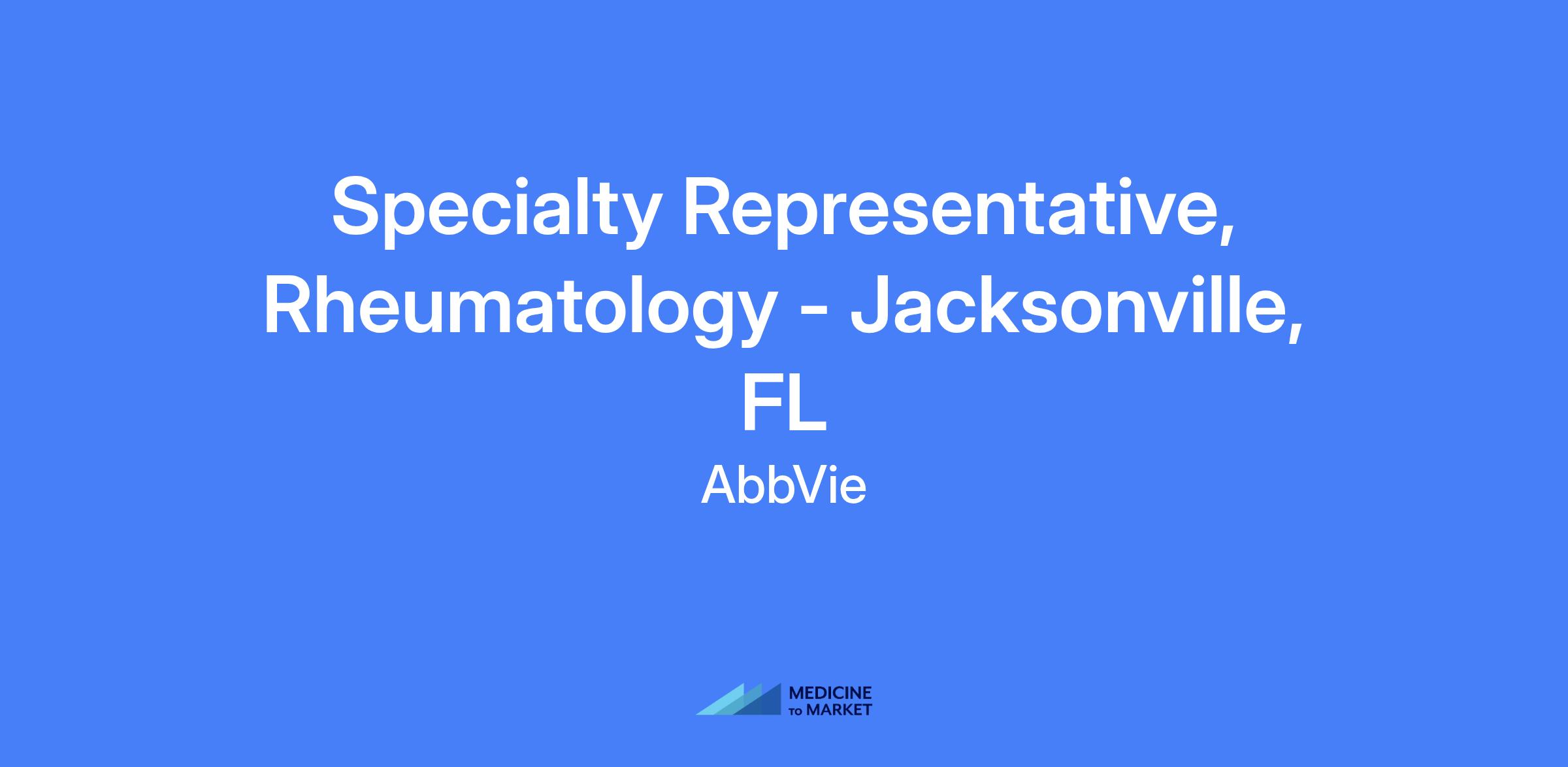 Specialty Representative, Rheumatology - Jacksonville, FL. Field-based role serving Jacksonville, Gainesville and surrounding areas; responsible for executing brand strategy and tactics in the field, managing territory and targeted accounts, building strong customer relationships, and solving customer needs to maximize short and long-term sales performance while adhering to AbbVie’s code of conduct and all applicable laws and regulations.