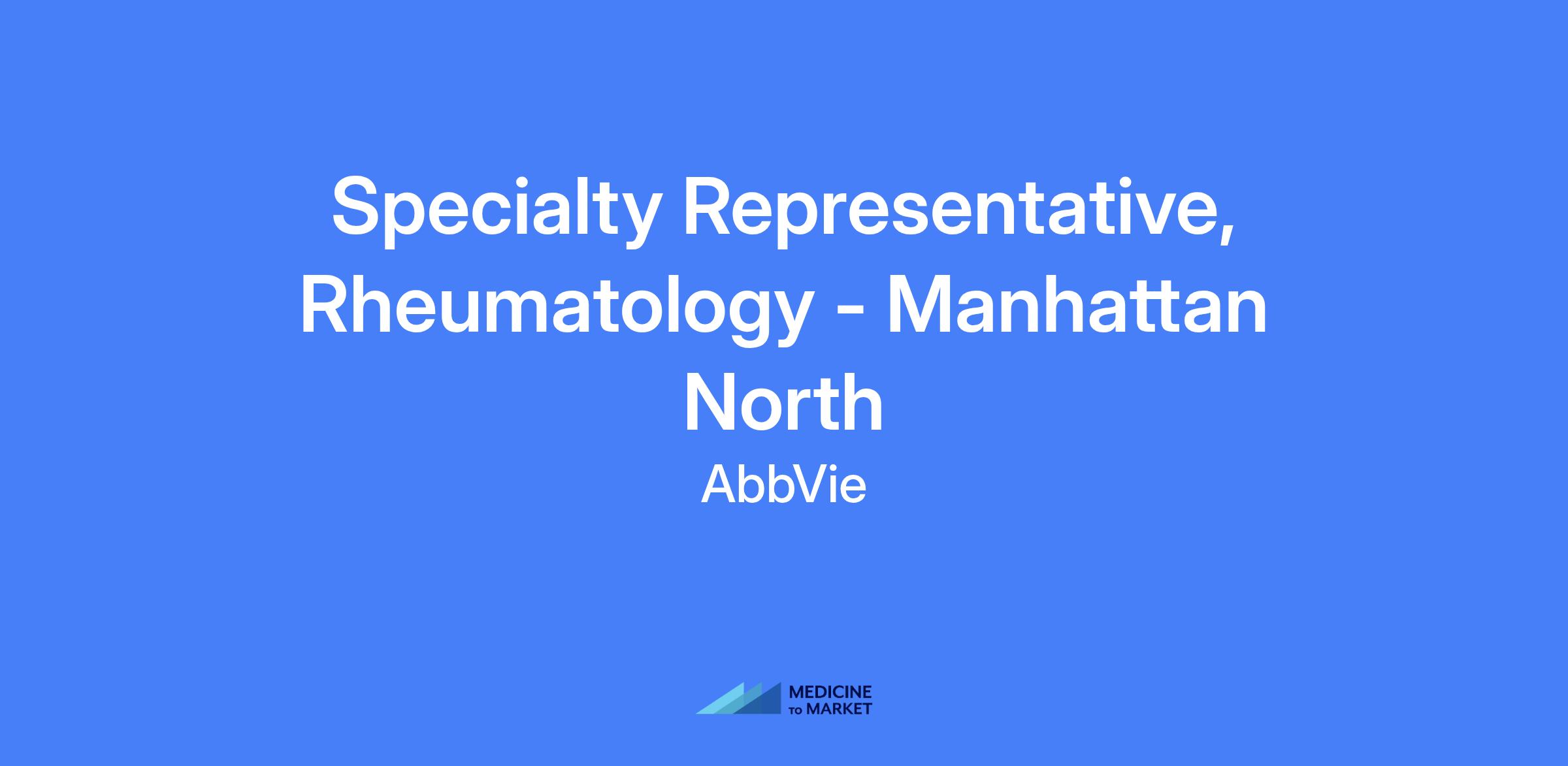 Specialty Representative, Rheumatology - Manhattan North. Field-based role focused on executing brand strategy and tactics, managing territory and accounts, building strong customer relationships, and solving customer needs to maximize short and long-term sales while adhering to policies and regulations.