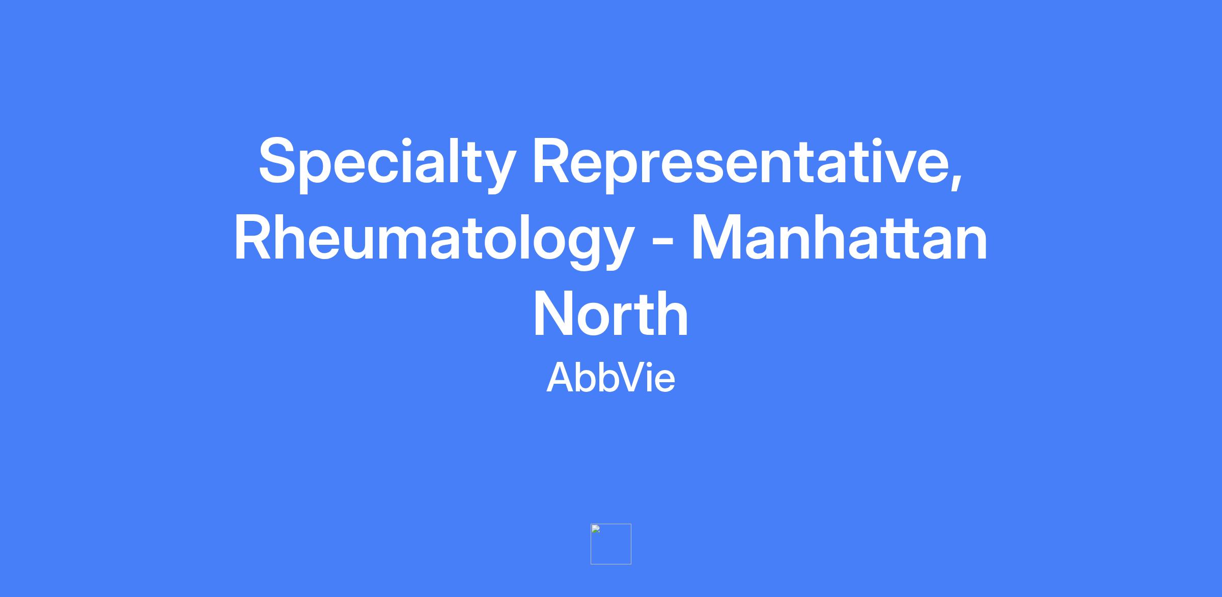 Specialty Representative, Rheumatology - Manhattan North. Field-based role focused on executing brand strategy and tactics, managing territory and accounts, building strong customer relationships, and solving customer needs to maximize short and long-term sales while adhering to policies and regulations.