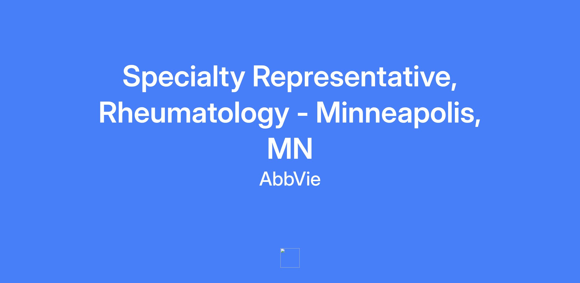 Specialty Representative, Rheumatology - Minneapolis, MN. Field-based role delivering brand strategy and tactics, managing territory and targeted accounts to maximize short and long-term sales performance with patient-centered focus.