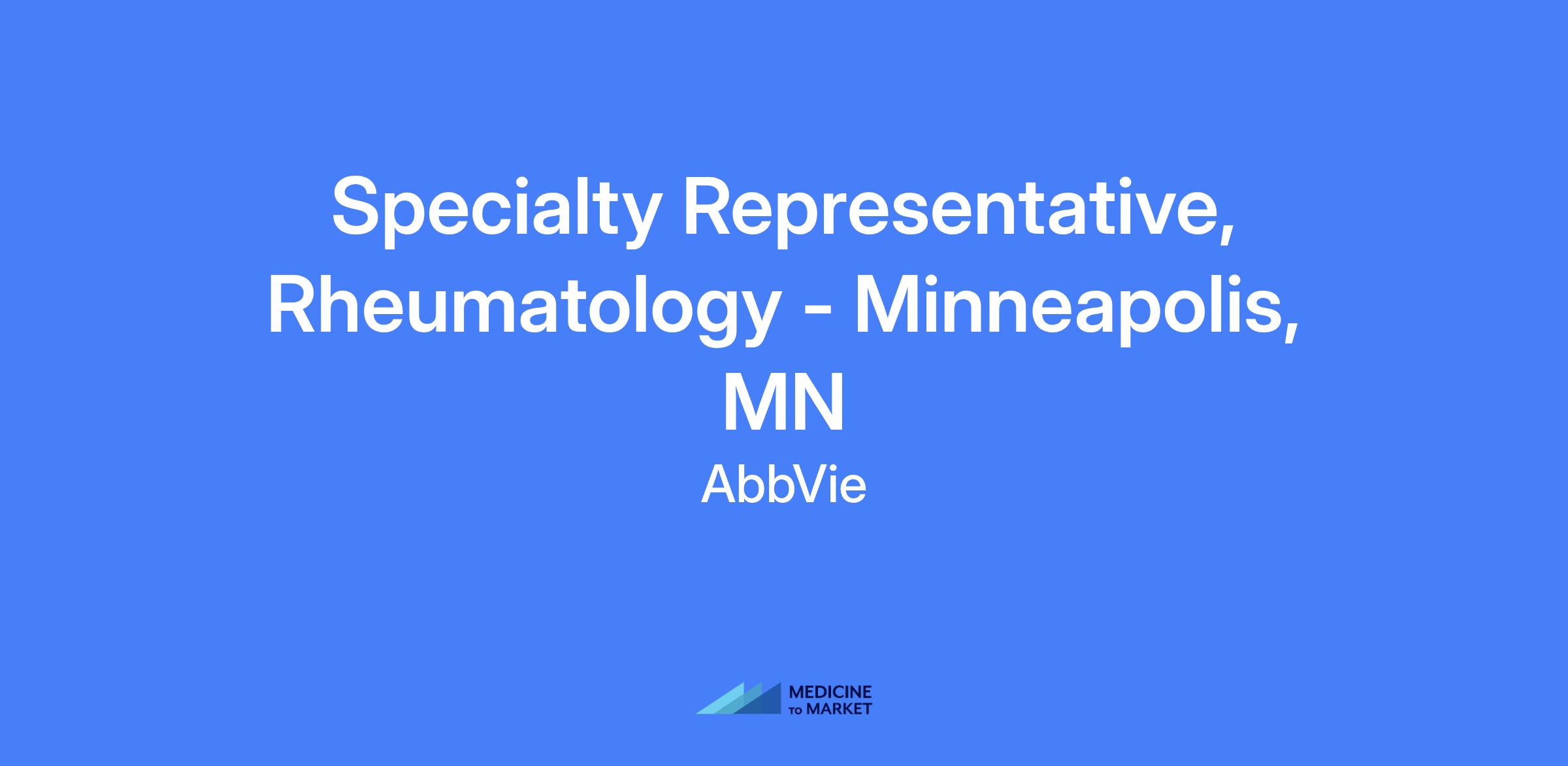 Specialty Representative, Rheumatology - Minneapolis, MN. Field-based role delivering brand strategy and tactics, managing territory and targeted accounts to maximize short and long-term sales performance with patient-centered focus.
