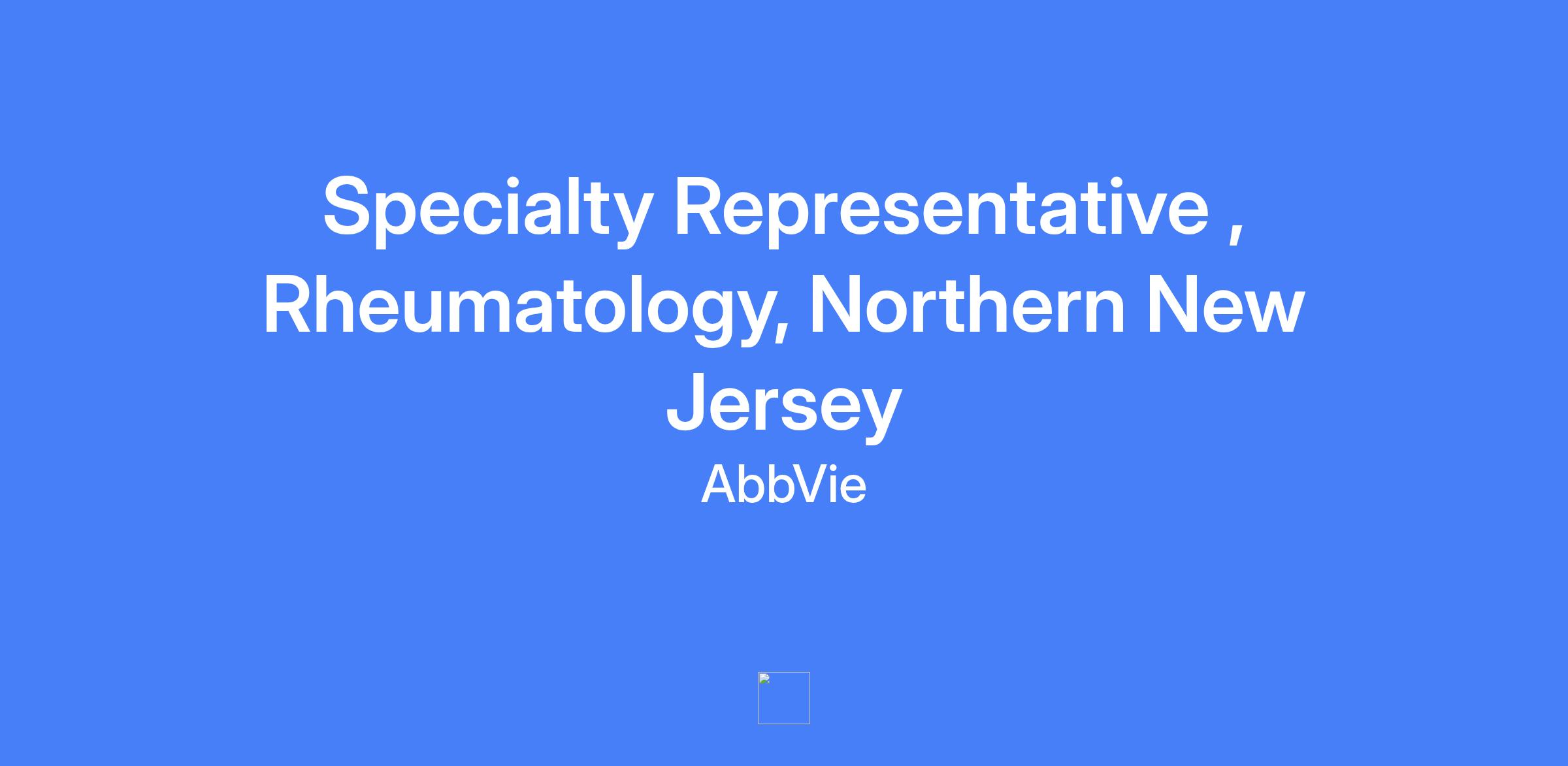 Specialty Representative, Rheumatology, Northern New Jersey. Execute brand strategy and tactics in field, drive sales performance, effectively manage assigned territory and targeted accounts, build strong customer relationships and a customer needs solving capability to maximize short and long term sales performance with patient at the center, adhering to AbbVie’s code of conduct, policies and all applicable laws and regulations.