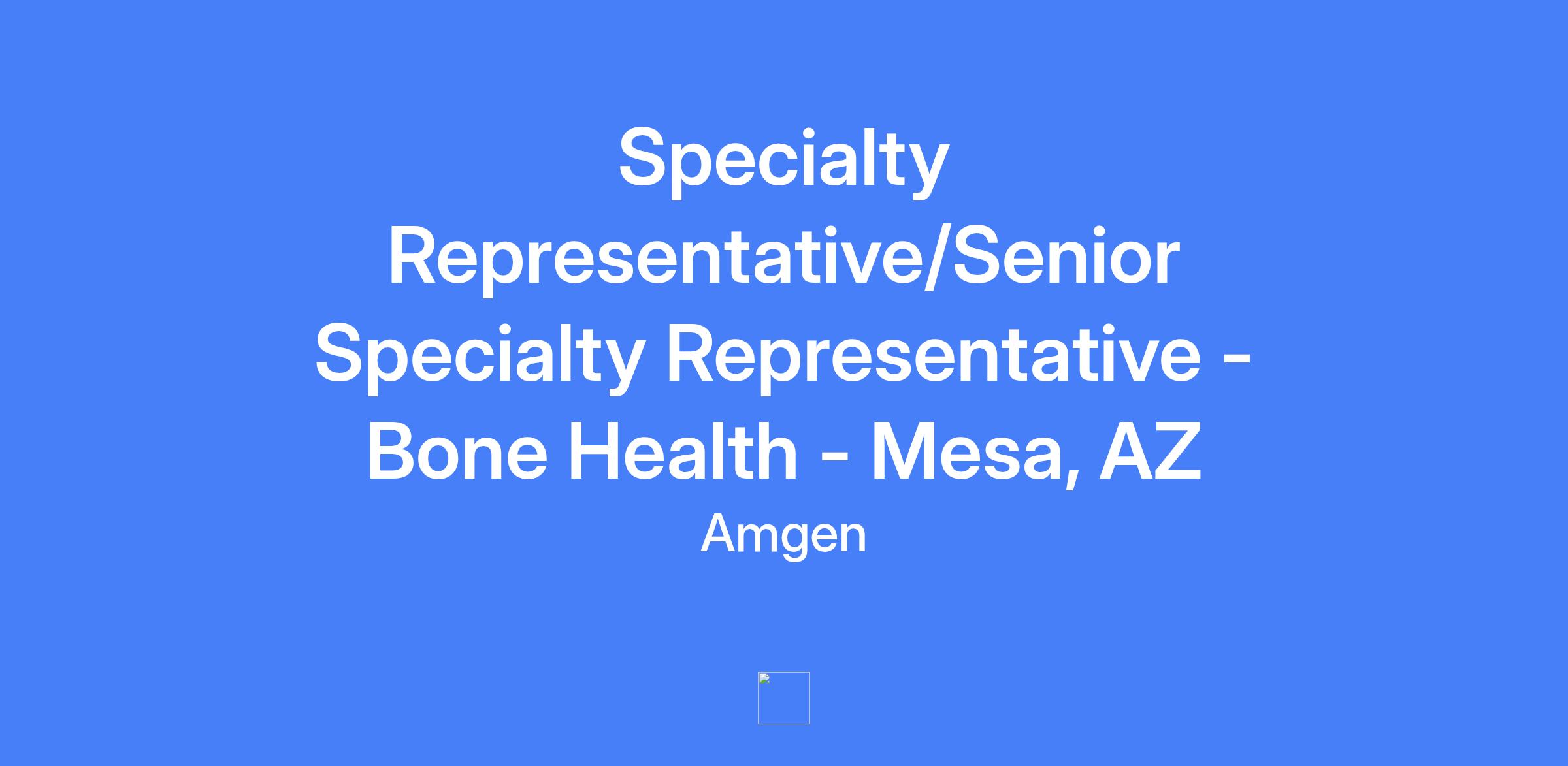 Specialty Representative/Senior Specialty Representative - Bone Health - Mesa, AZ. Territory covers Mesa, Tempe, Central Phoenix. Relocation is not offered for this role.