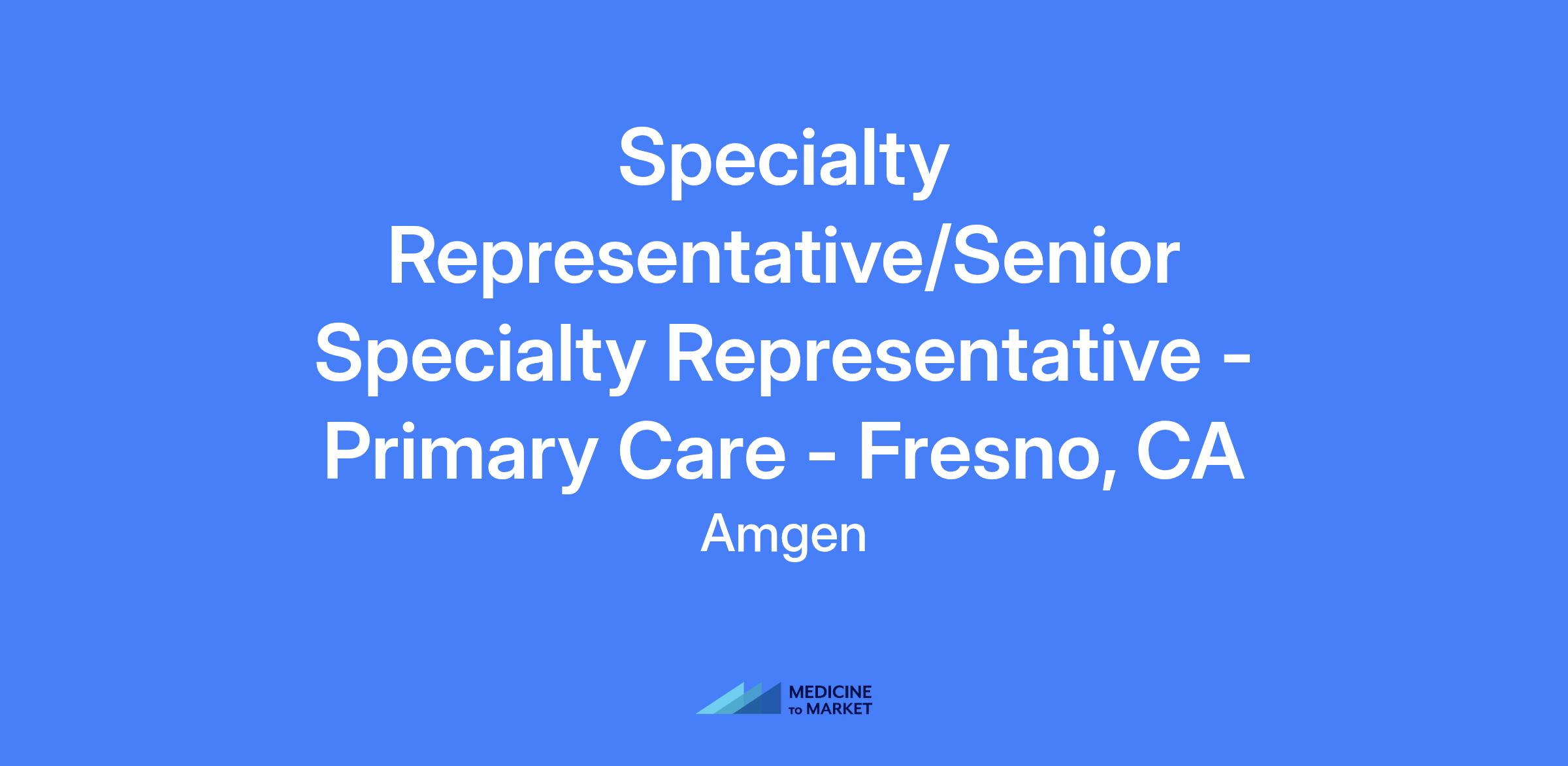 Specialty Representative/Senior Specialty Representative - Primary Care, Fresno, CA. Territory includes Fresno, Bakersfield, Modesto. Relocation is not offered.