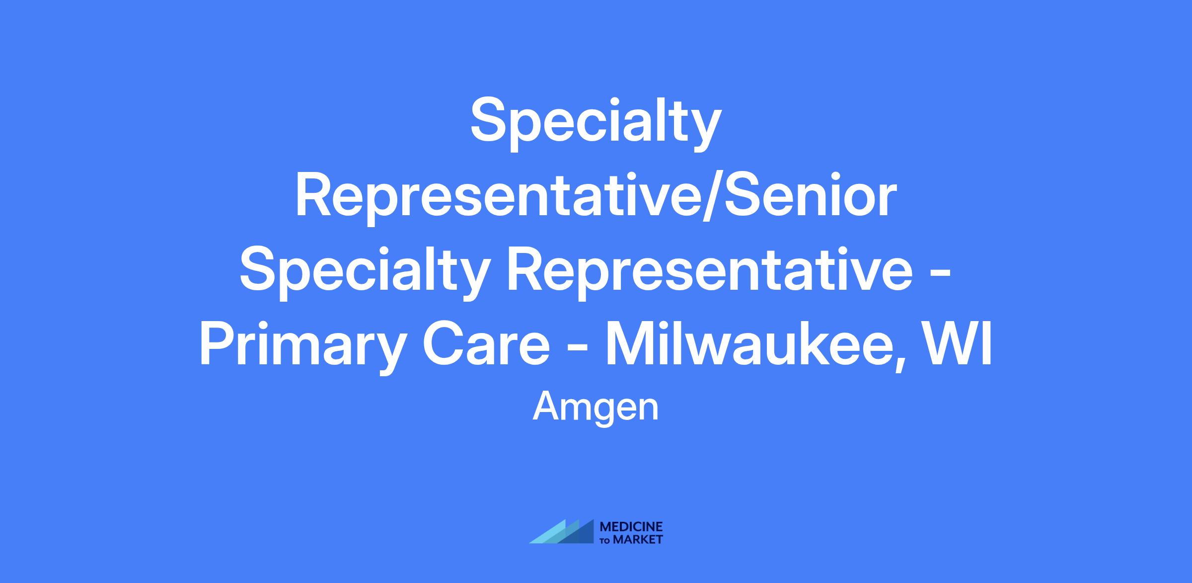 Specialty Representative/Senior Specialty Representative - Primary Care - Milwaukee, WI. Territory covers Milwaukee, WI; Green Bay, WI; Appleton, WI. This role focuses on delivering clinical knowledge of Amgen products to medical professionals and guiding them through the payer environment, while implementing marketing strategy under the District Manager.