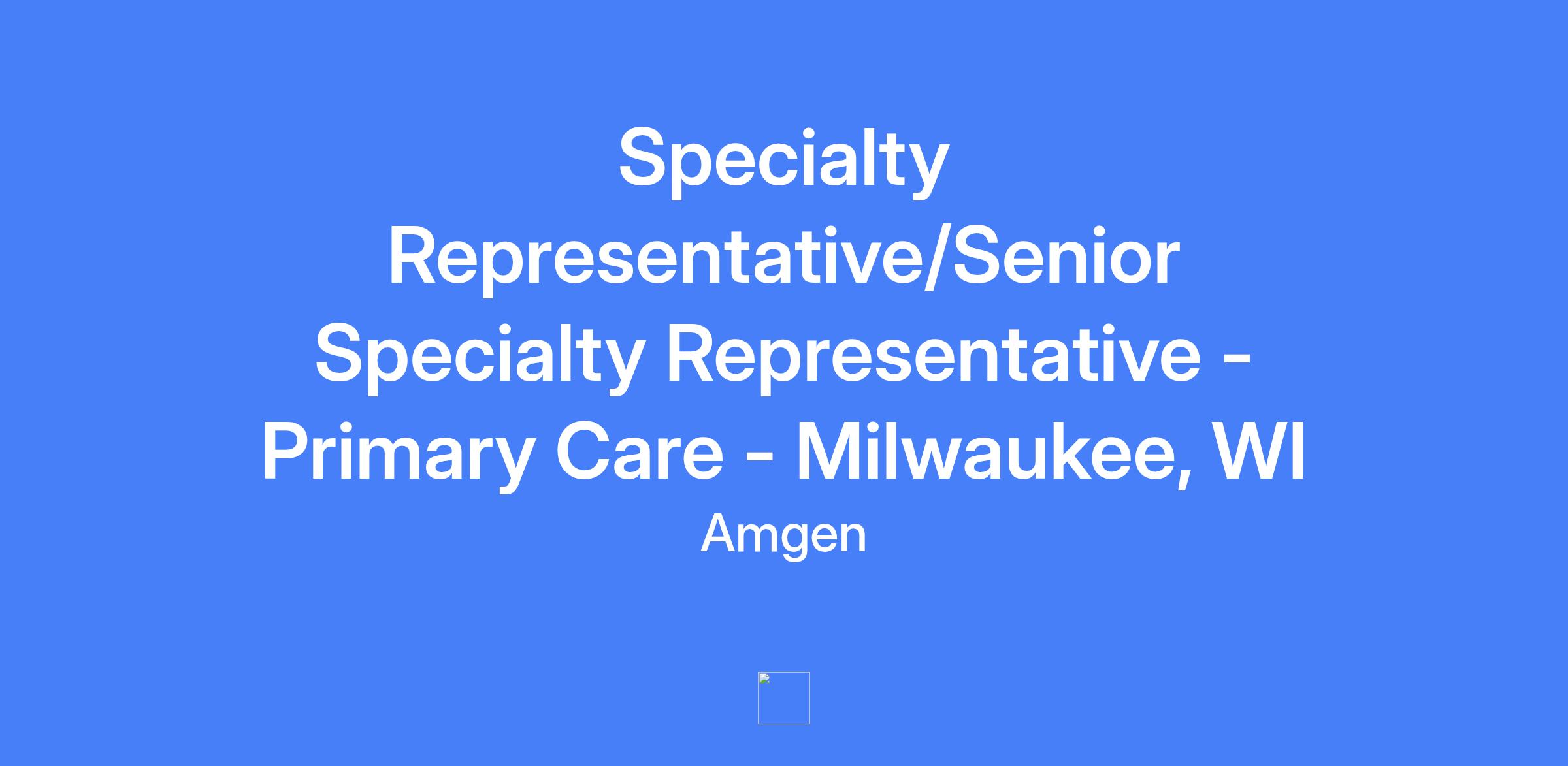 Specialty Representative/Senior Specialty Representative - Primary Care - Milwaukee, WI. Territory covers Milwaukee, WI; Green Bay, WI; Appleton, WI. This role focuses on delivering clinical knowledge of Amgen products to medical professionals and guiding them through the payer environment, while implementing marketing strategy under the District Manager.